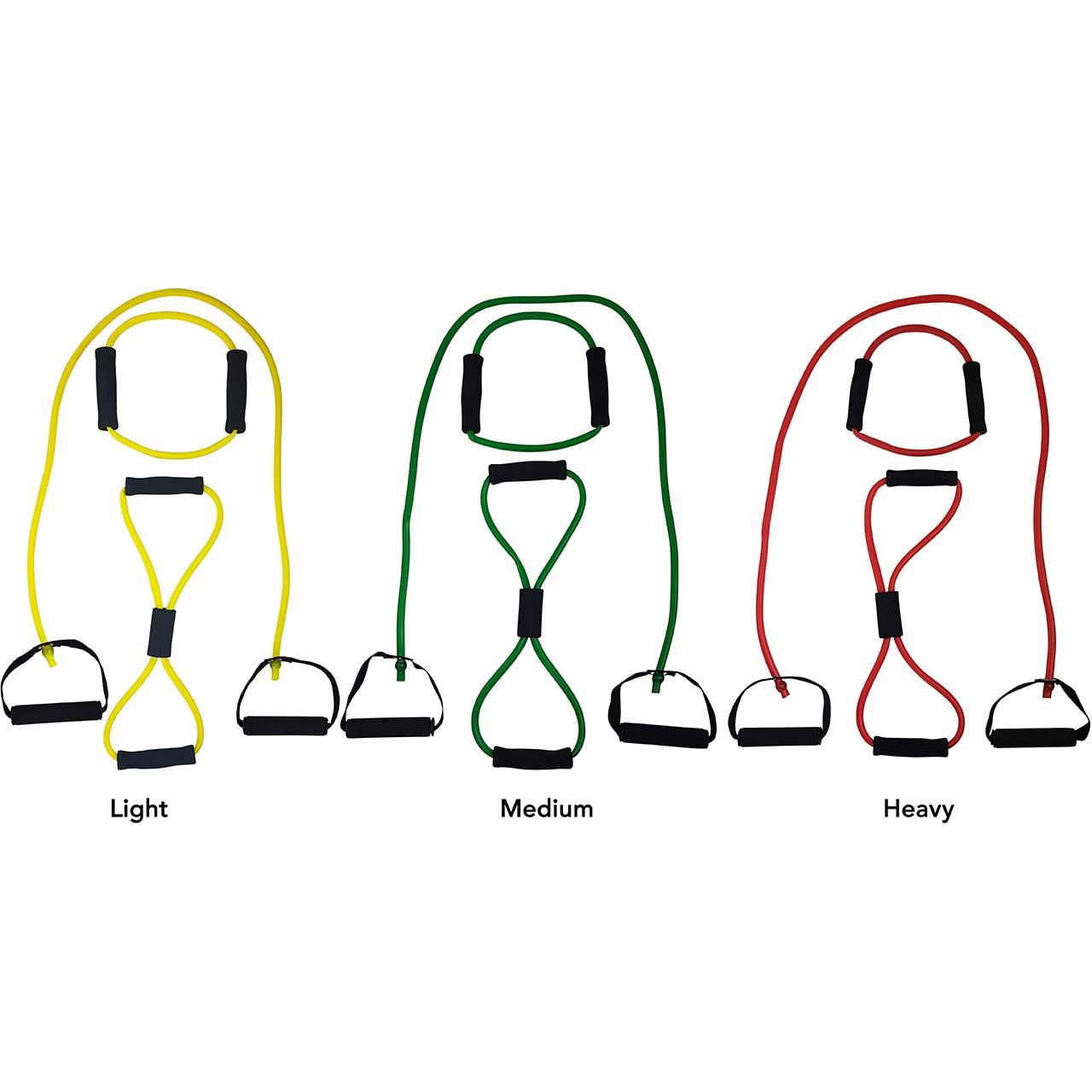 Resistance training for strength building thanks to the Tubing Set of Tunturi. This set is equipped with comfortable foam handles and can be taken anywhere. 3 different tubings are included in this set.