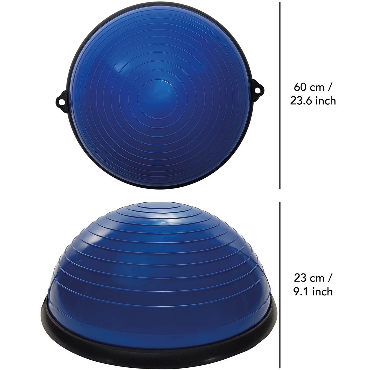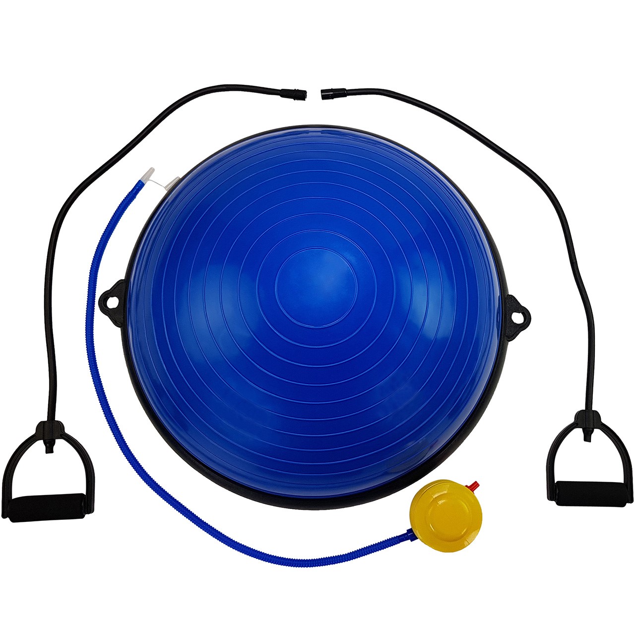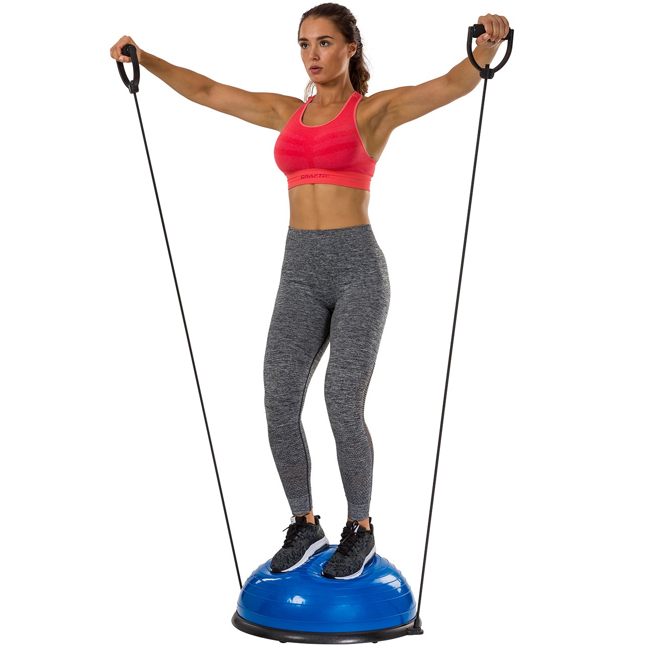The Tunturi Balance Trainer 14TUSFU152 serves exercises for stabilization and coordination. It comes with grips and tubes, which are easy detachable. The height measures 25 cm and the diameter 58 cm. An exercise chart is also included.