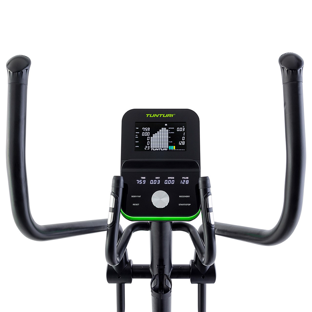 Heart rate measurement on handles, optional Bluetooth or 5.0–5.4 KHz chest strap (not included)