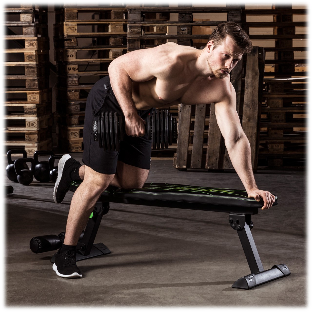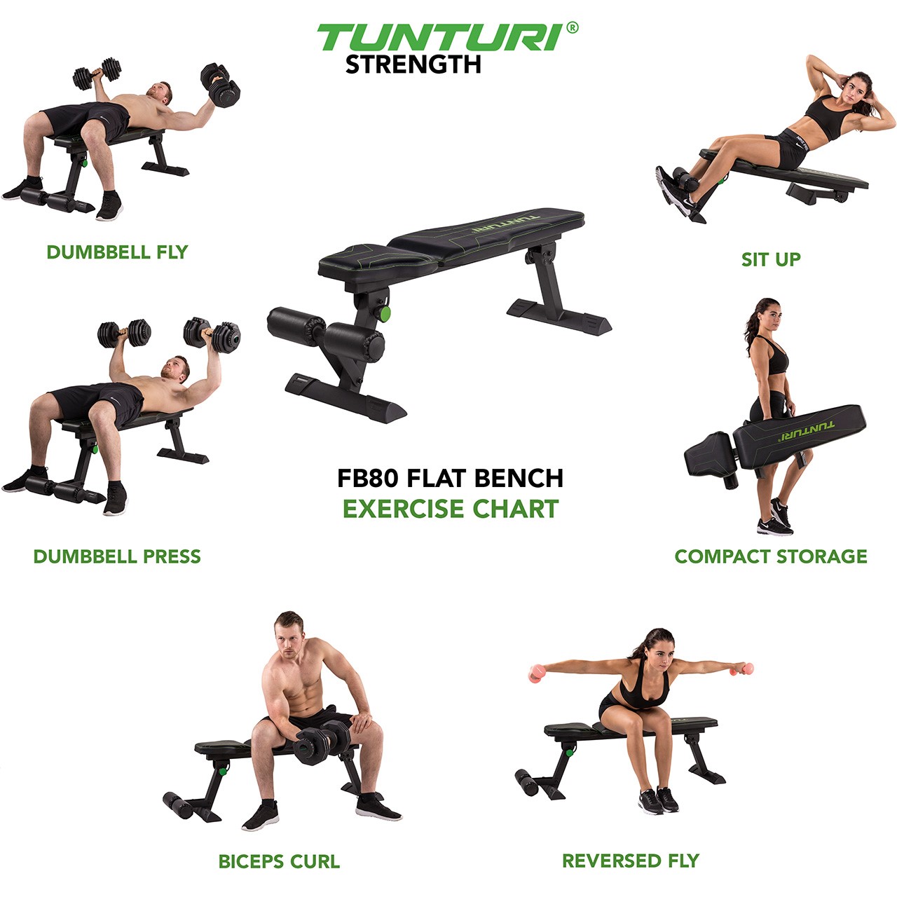 The Tunturi Flat Bench FB80 combines functionality, comfort, and space-saving design – a must-have for your home gym!