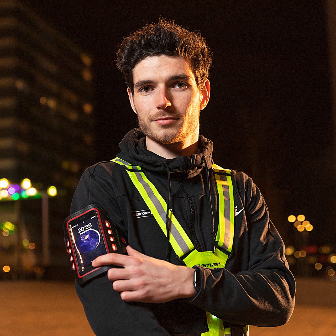 The Tunturi LED Telephone Arm Band (14TUSRU179-181) comes in the colors green, red or yellow. The smartphone holder is a useful exercise gadget. So while jogging, cycling, climbing, walking or even during strength training, the hands and pockets are free. The arm band is made of neoprene and comes in this option with LED inserts. This increases the wearer's visibility during the dark winter months.