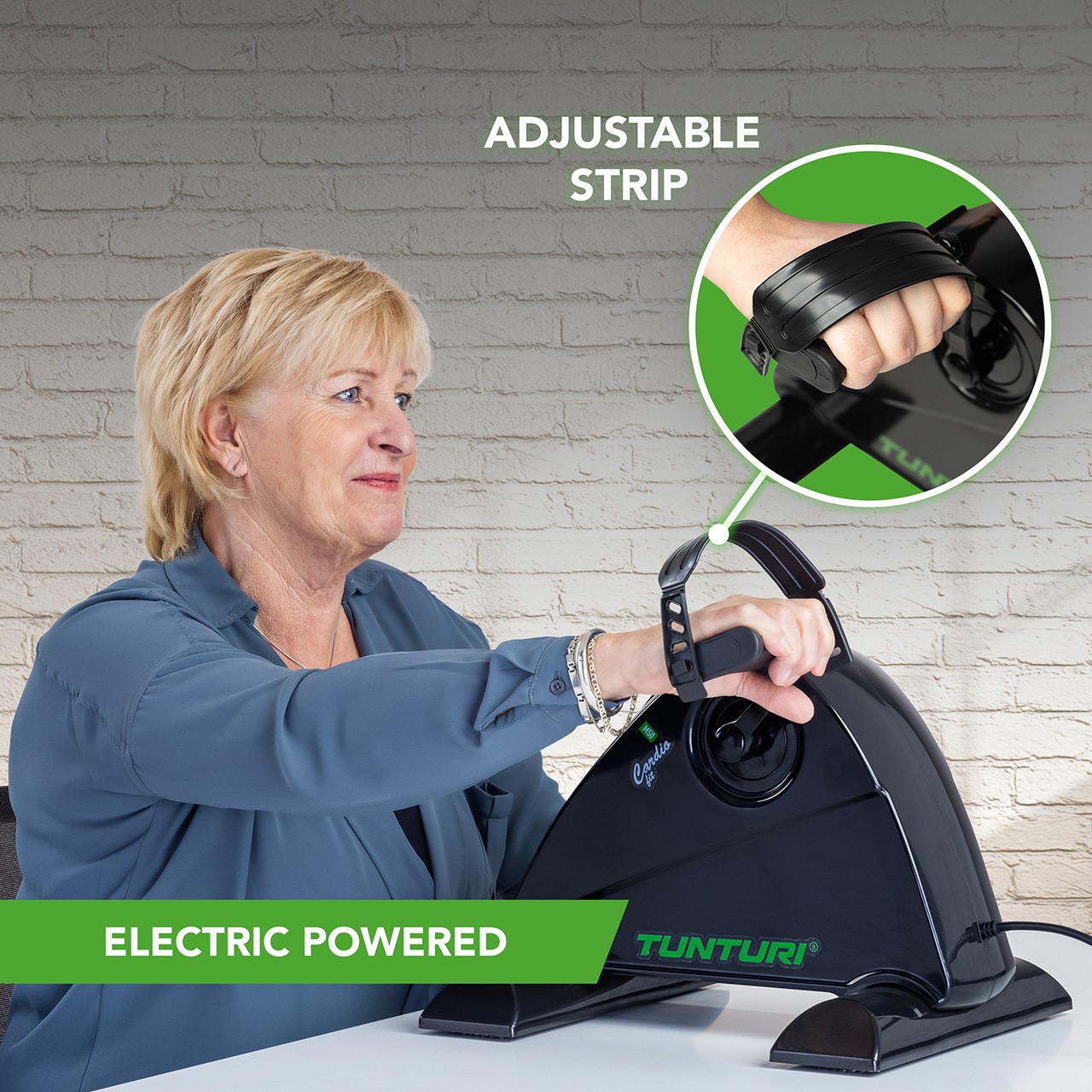 Movement is essential for your health, and the Tunturi M50 Cardio Fit Trainer (23TCFM5000) makes it easy to stay active. Whether you’re working to regain mobility after an injury or looking for gentle home exercise, this electric mini bike is the perfect solution. It provides low-impact training for arms and legs and, thanks to its compact and lightweight design, is ideal for use at home or in physiotherapy.