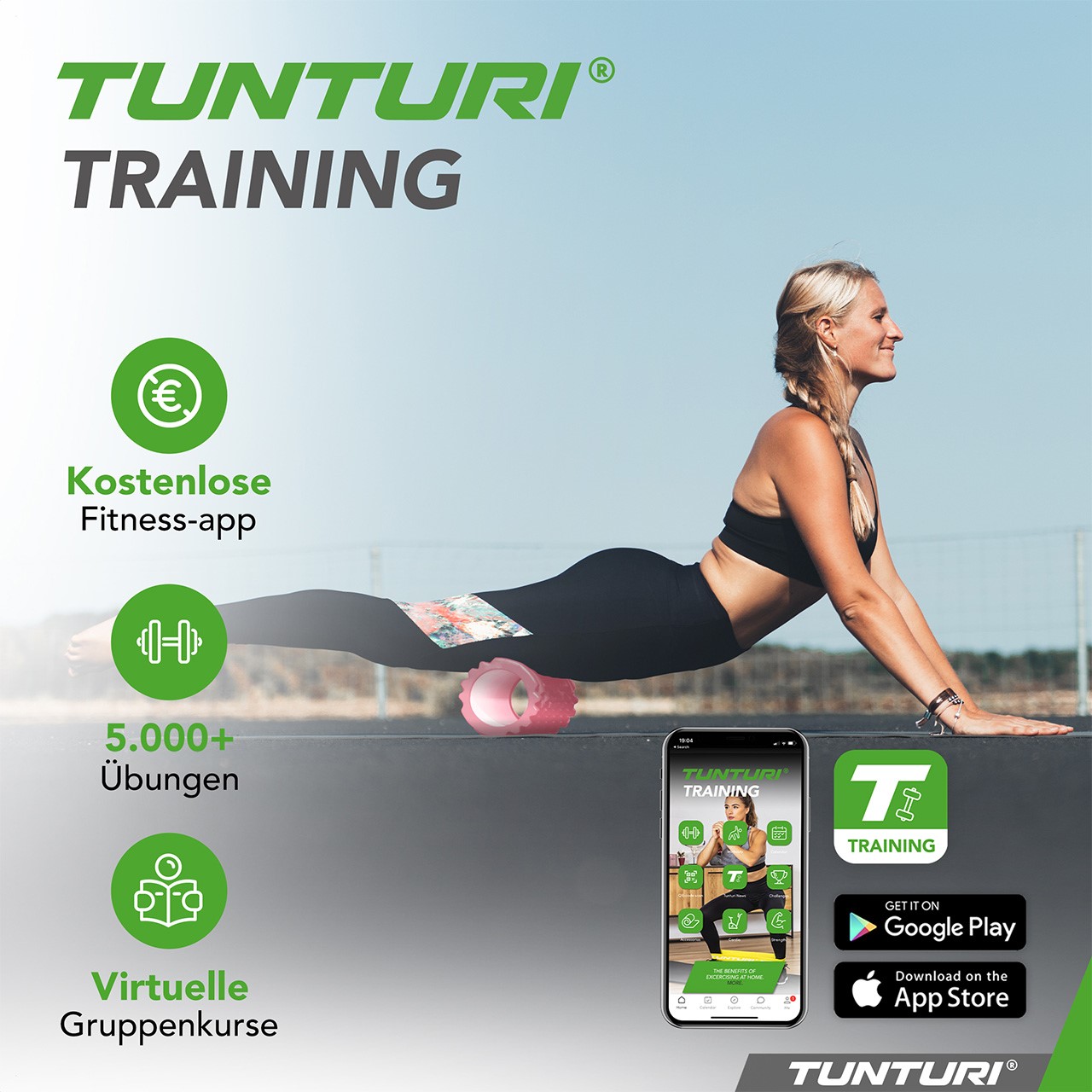 1 × Tunturi Massage Roller incl. free Tunturi Training App