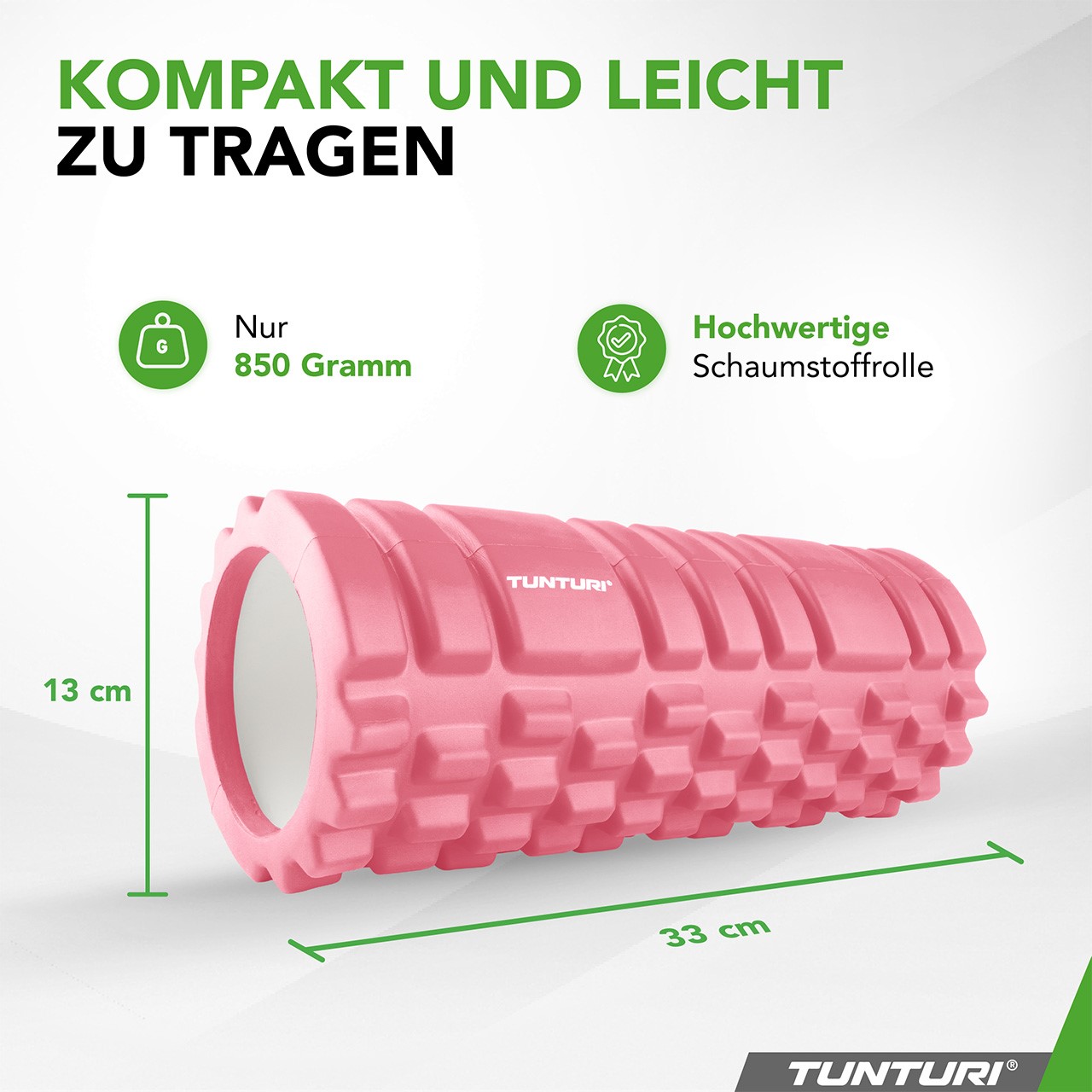 With its compact dimensions and low weight, the Tunturi Massage Roller is easy to transport and store. The hollow interior can hold a small towel, making it a practical choice for gym sessions or travel. Always have your recovery tool close at hand.