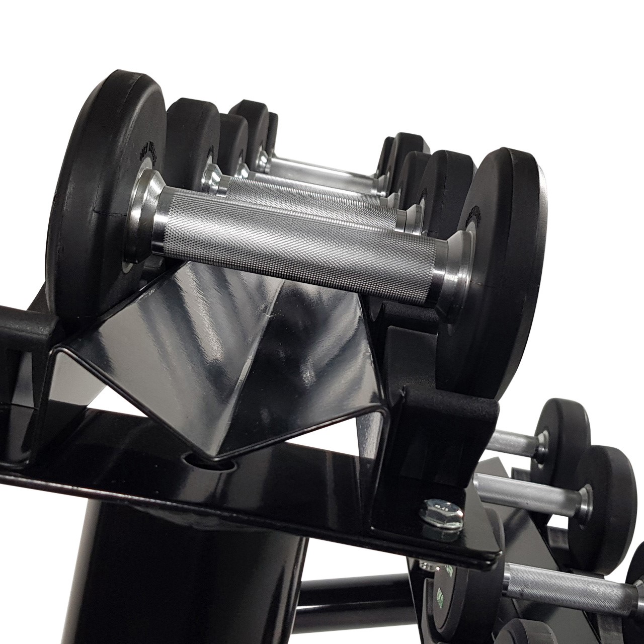 This dumbbell rack system is made for home use as well as for professional and commercial use in gyms and physiotherapies.