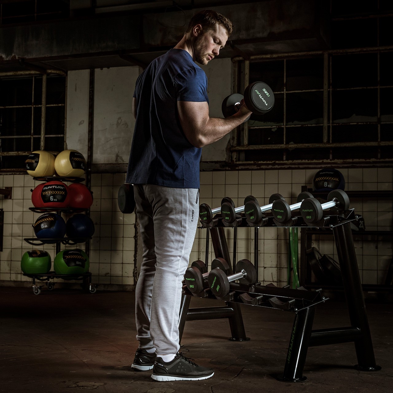 This item (14TUSCF054) consists of 2 pieces of shelfs for the professional Tunturi dumbbell rack.
