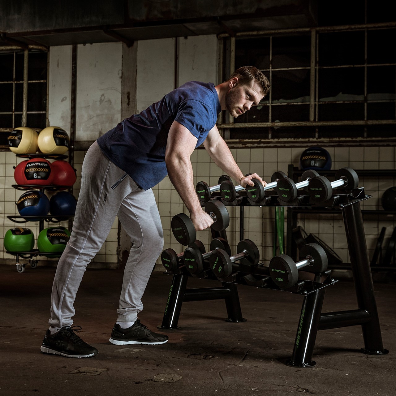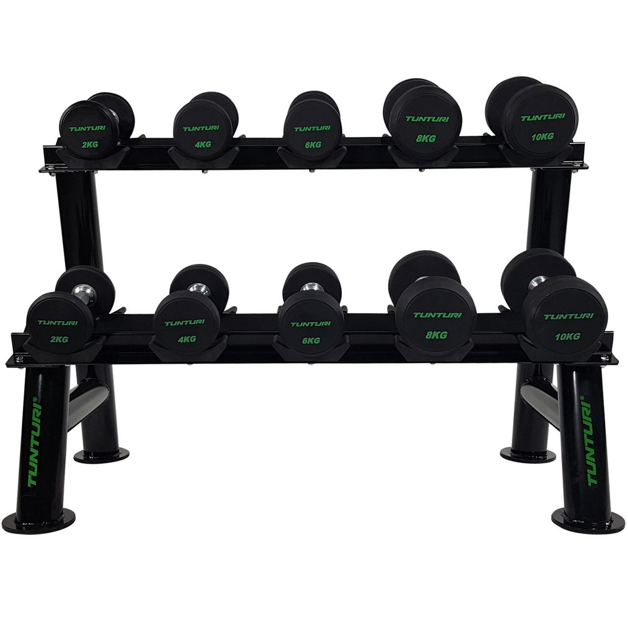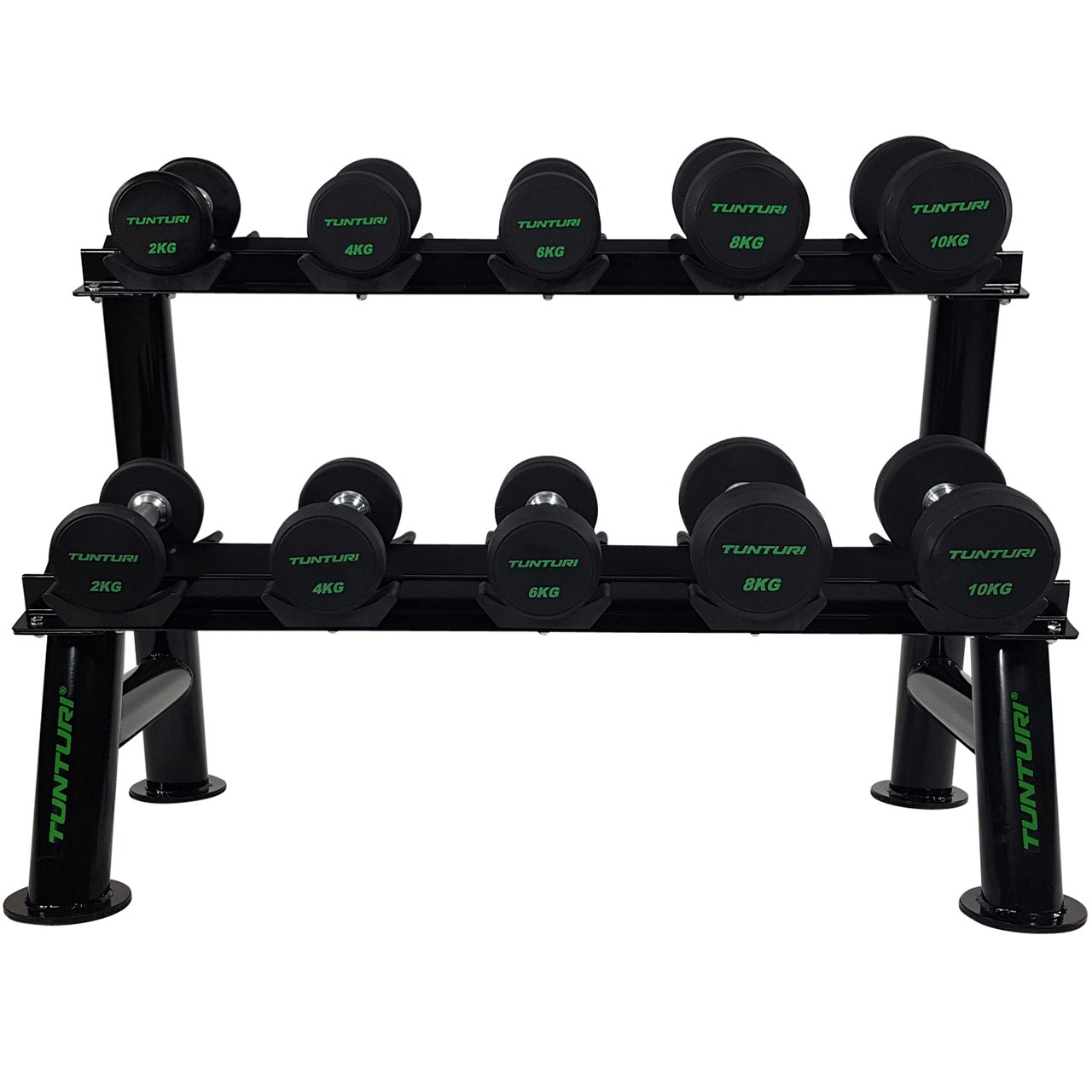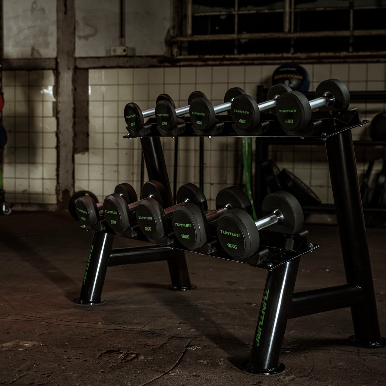 This item (14TUSCF053) consists of 1 stand for the professional Tunturi dumbbell rack.