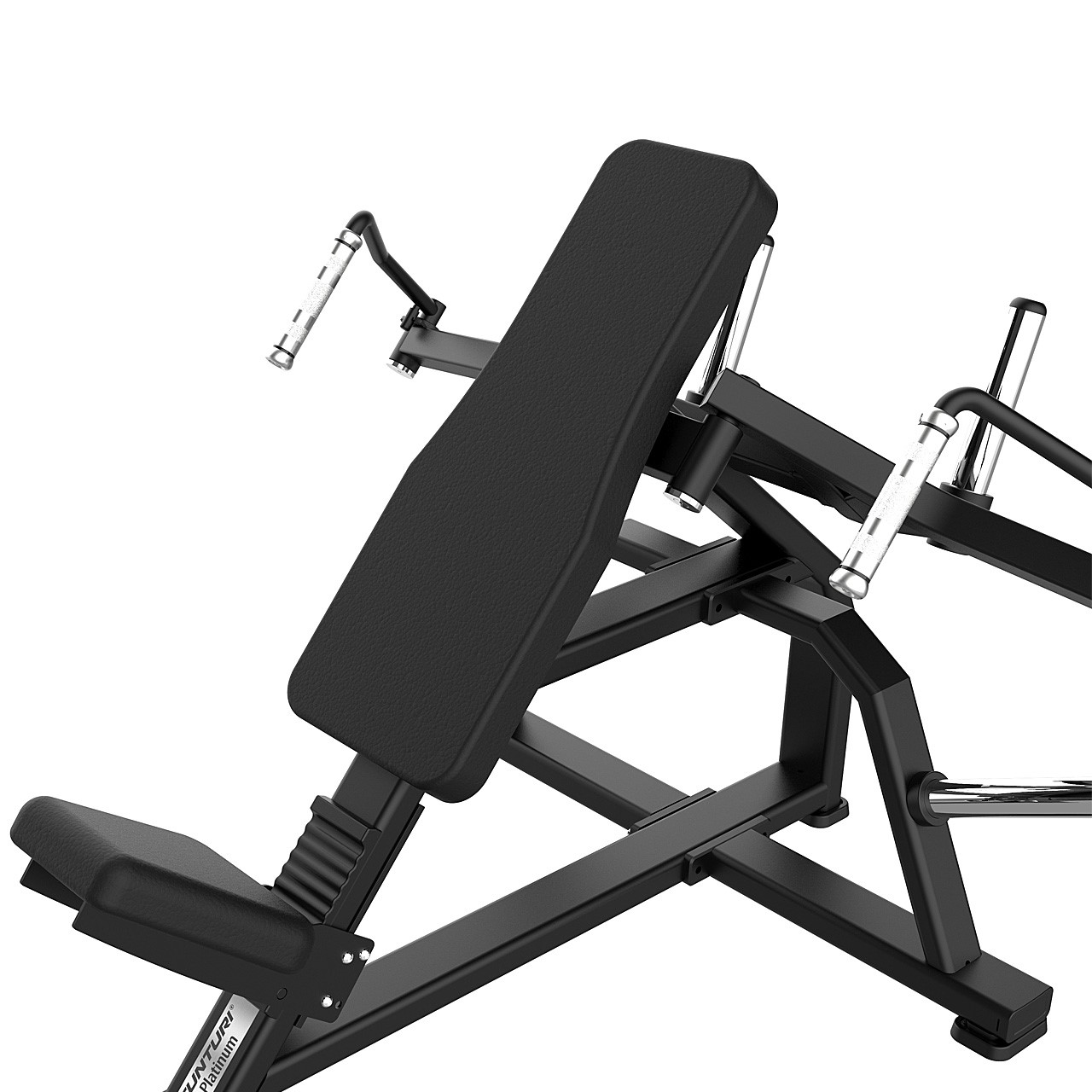With the Plate Loaded machines of the Tunturi Platinum V-Series, you train with Olympic 50 mm weight plates and can load up to 150 kg per pin. The robust construction and precise mechanics ensure smooth, natural movement. Convenient storage pins keep your weight plates always within reach – saving time during workouts and keeping your training space safe and organized. At the same time, your plates are better protected against scratches and wear, which extends their lifespan. Additional storage racks are no longer necessary, saving valuable space – especially in smaller gyms. Plus, the neat, professional look of the machine creates a motivating training environment.