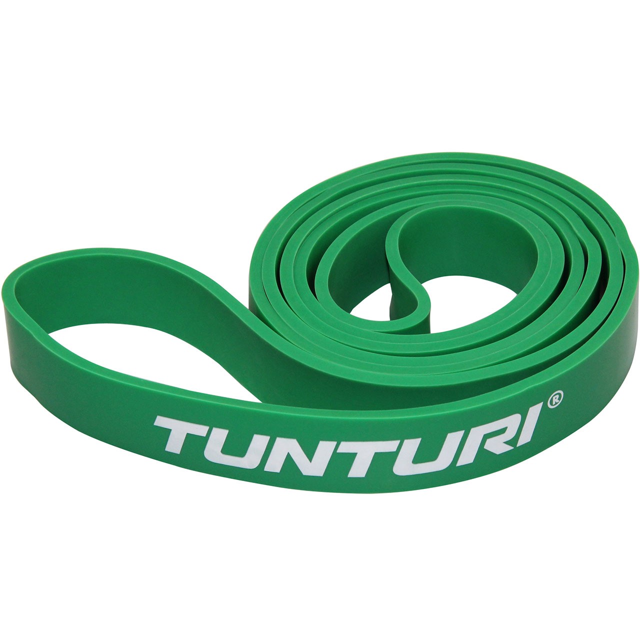 The green Tunturi rubber Power Band has a width of 2.9 cm and is therefore the one with the medium resistance level. This equals around 10 to 30 kg.