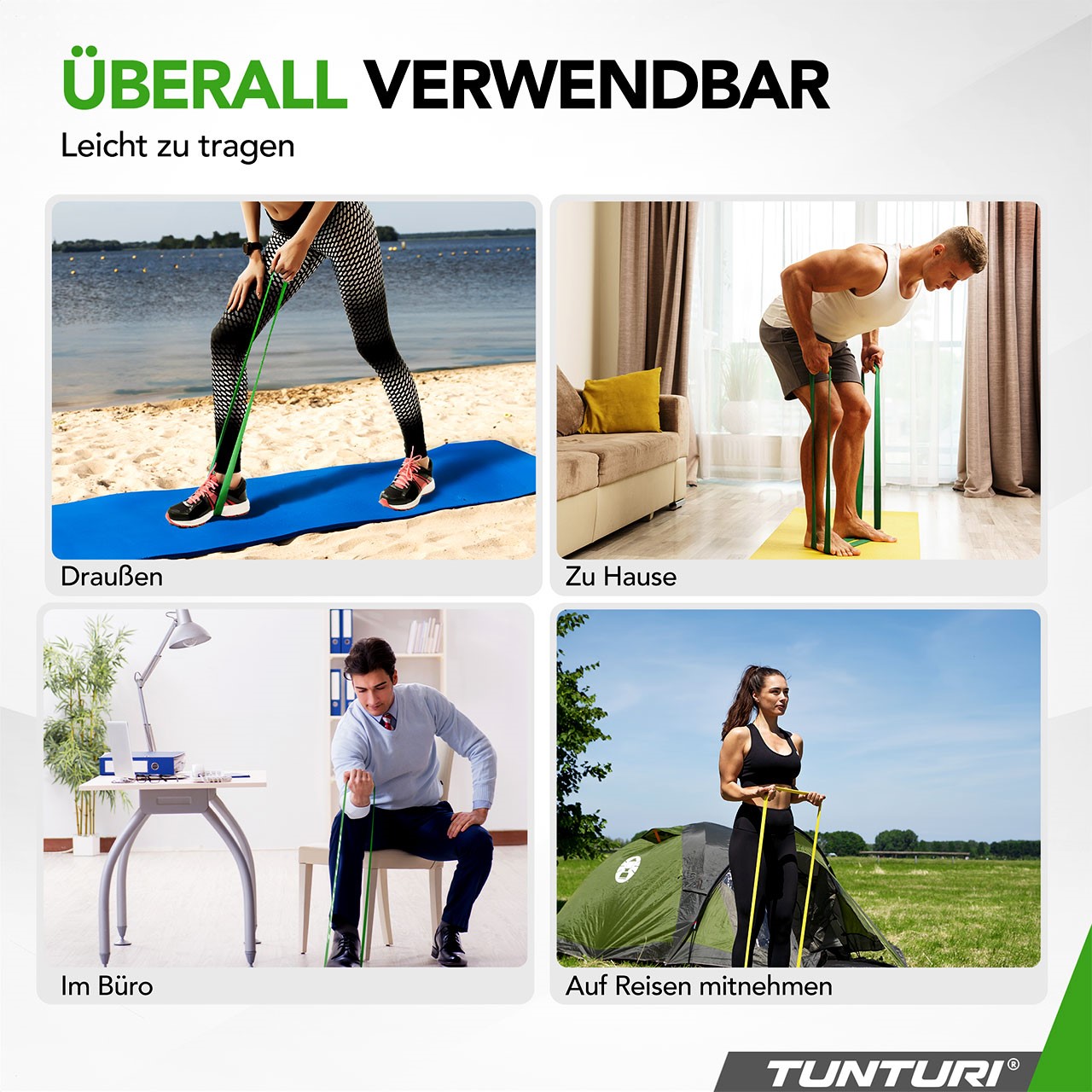 The Tunturi Power Band is suitable for a wide range of exercises, from squats and shoulder exercises to core workouts. Stretching the band increases resistance, making your muscles work harder.
