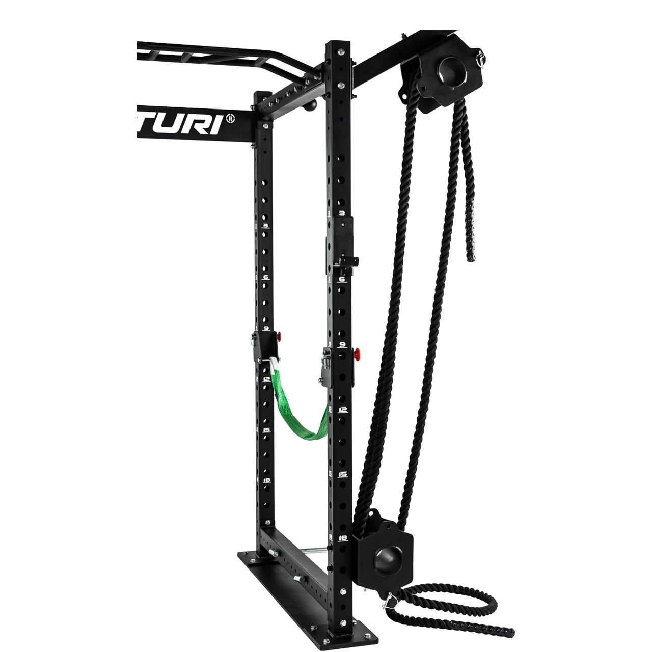 The Tunturi Rope Trainer (18TSRC2020) can be purchased to expand the Tunturi Cross Training Rack RC20. This tool can be mounted to train with Battle Ropes on the Cross Training Rack. Thanks to the flexible mounting system, the Rope Trainer can be attached at different heights to make the training variable. The matching Battle Ropes can also be found from Tunturi.