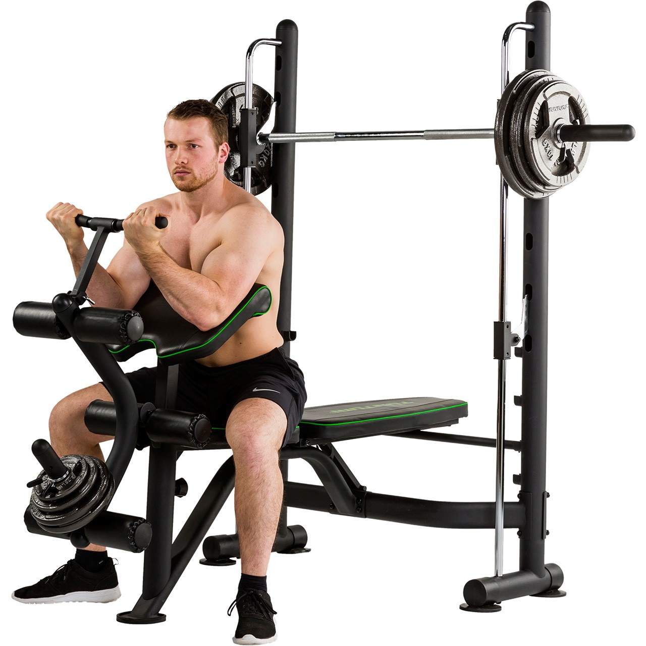 The Tunturi SM60 Strength Station is constructed from a stable, powder-coated steel frame and supports a maximum user weight of 140 kg. It is compatible with both 50 mm and 30 mm weight plates to meet your training needs.