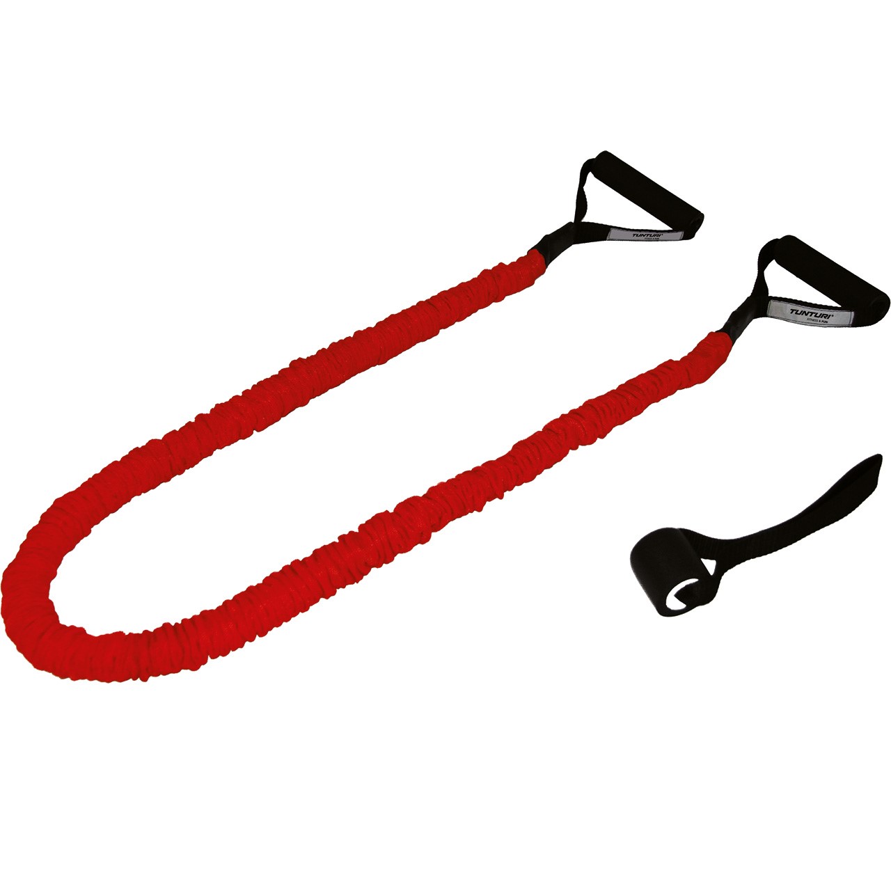 The Tubing Set with protective cover Heavy (14TUSFU268) by Tunturi supports the power build-up by specific resistance training. The cover sleeve protects the athlete and the rope, but does not irritate the training. The tubing set with protective cover is available in two versions: medium and heavy.