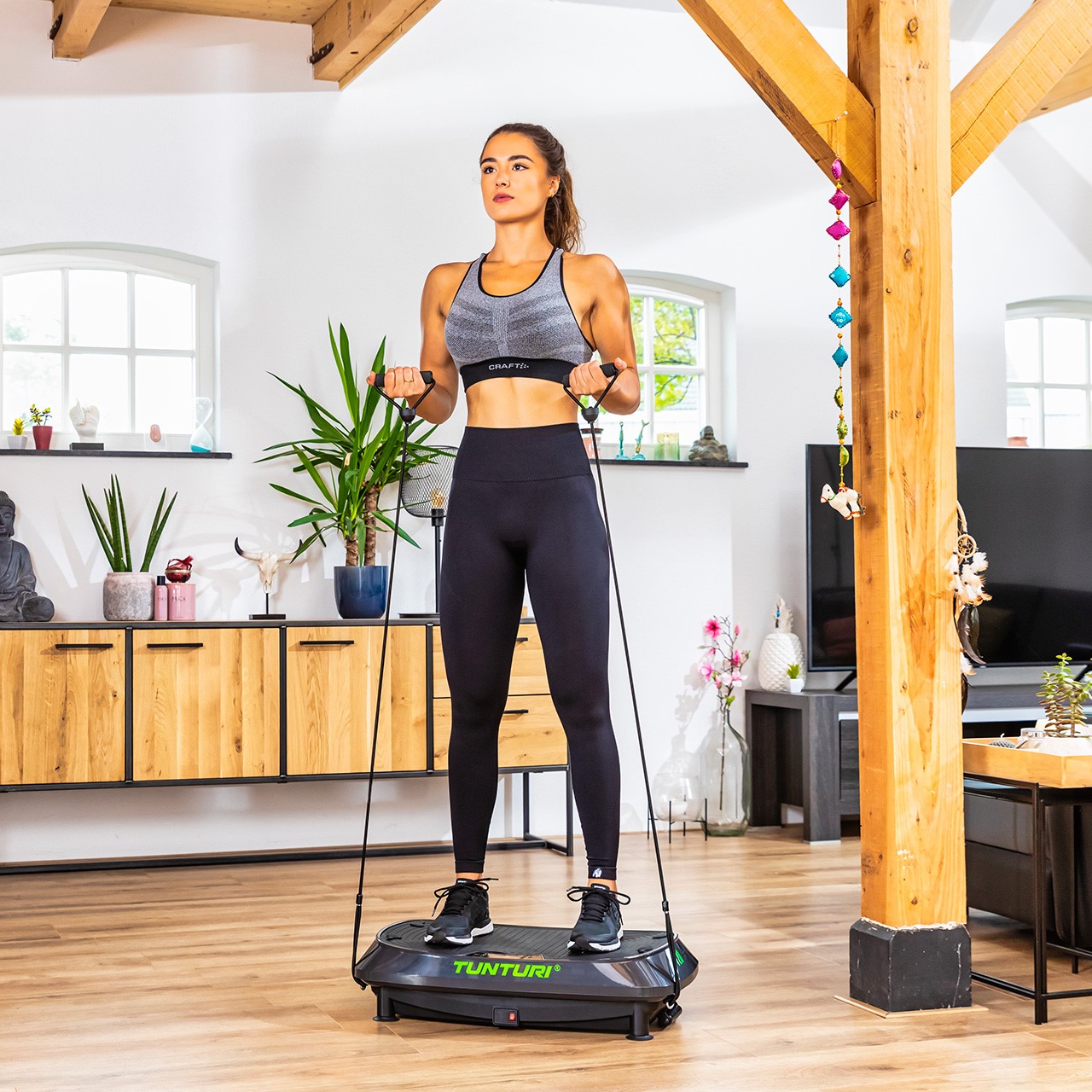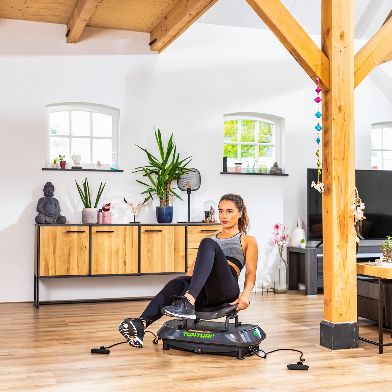 By using the Tunturi Plate V10 (19TCFV1000), you cannot just build up muscles and accelerate fat burning, but also increase blood circulation and bone density. The Tunturi V10 is actually not a vibration plate, but a oscillation plate which does not work with vibration, but with oscillation. With this specific shaking movement, muscles need to react pointedly to keep body in balance. These exercises are very protective and done with a minimal stress on the backbone.