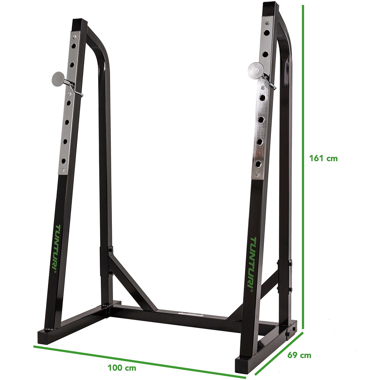 The Tunturi WT40 Squat Rack (17TSWT4000) is the ideal solution for versatile and intensive strength training. Made from durable steel, this squat rack offers maximum stability and longevity, perfect for exercises such as squats, deadlifts, lunges, calf raises, and upright rows. The slight backward tilt ensures that the barbell stays securely in position.