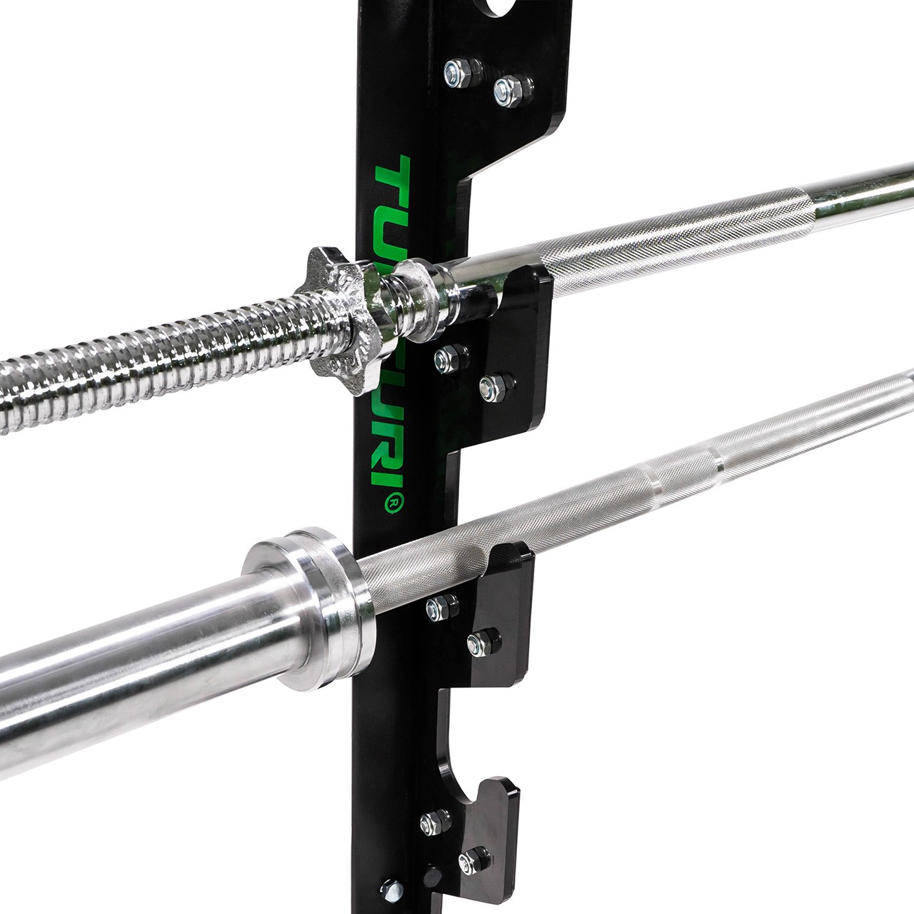 Bring order and structure to your home gym with the solidly built Tunturi Wall Rack for Barbells (14TUSCF103). This high-quality storage solution is designed specifically for the safe and space-efficient storage of up to 6 barbells – ideal for ambitious fitness enthusiasts and professional home gyms.