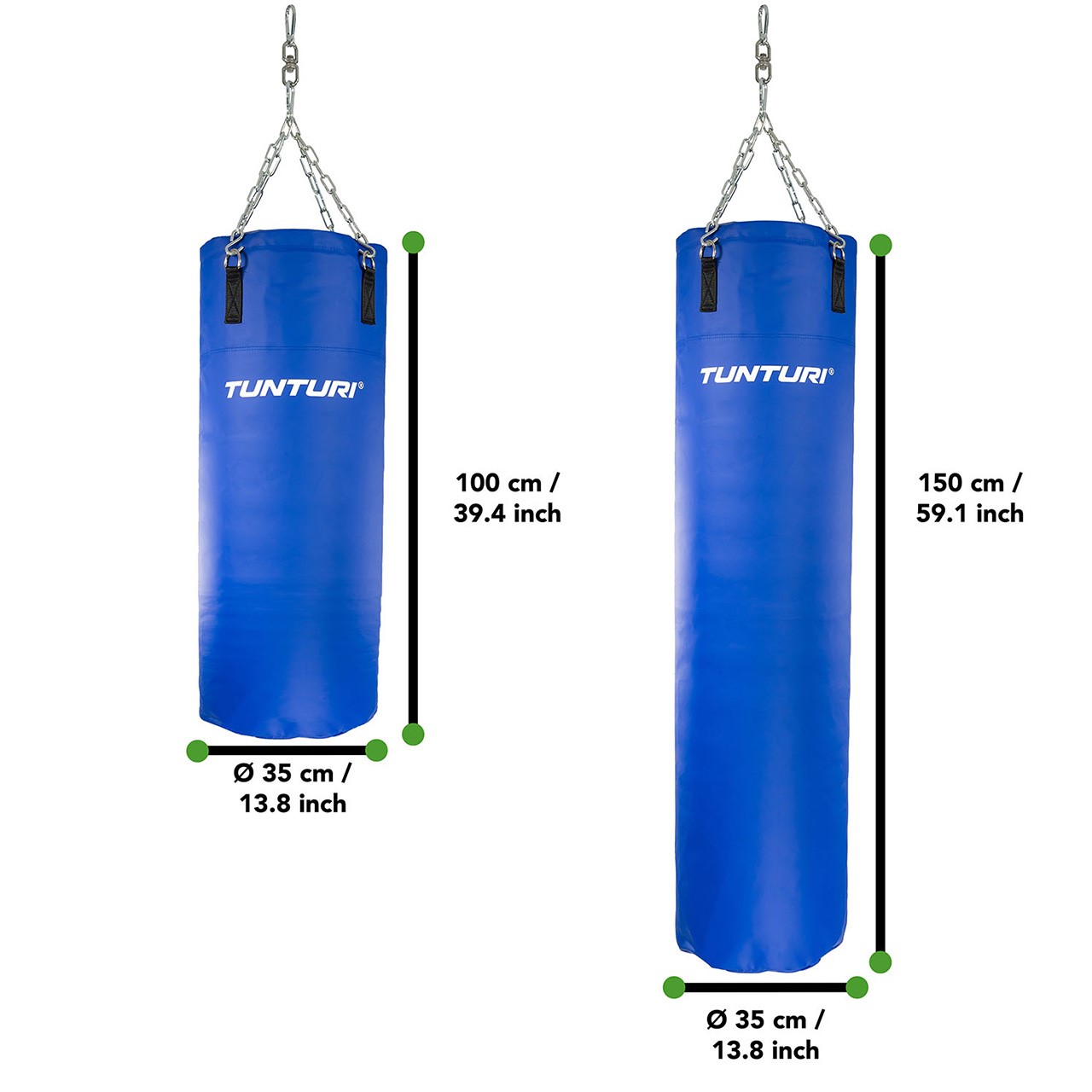 This Tunturi Aqua Boxing Bag (14TUSBO106) is delivered empty with a weight of 4 kg. When completely filled with water, this boxing bag reaches a height of 100 cm with a width of 35 cm. This will result in a weight of approximately 30 kg.