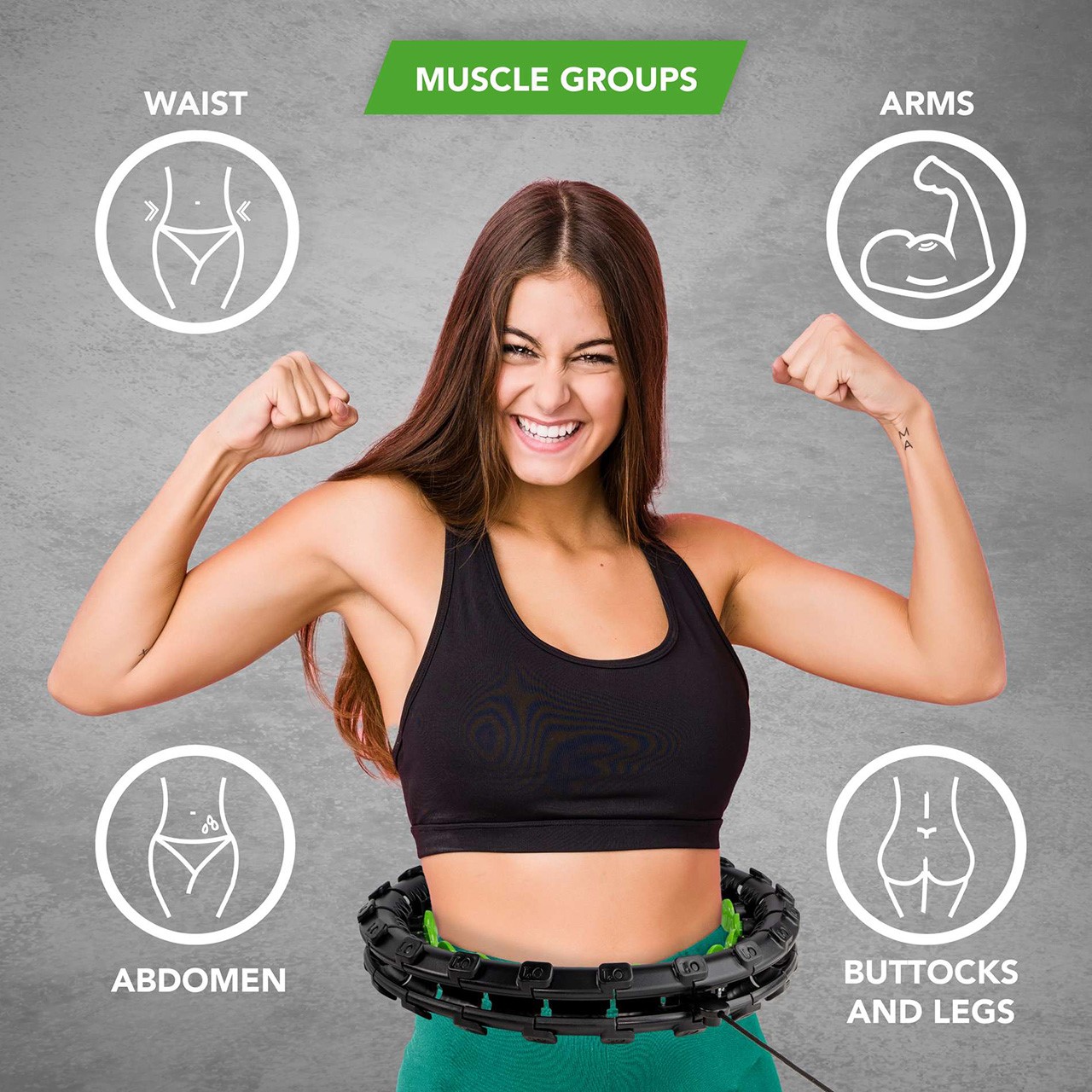 Train all the major muscles in your body with this adjustable hula hoop! With 30 detachable link pieces you can completely customize the size of the hoop and the included weight adds an extra challenge to your training. With the hula hoop you train your abdominal, back, leg and gluteal muscles. In addition, you improve your coordination, your hips and back become more flexible and you train your core stability. Hula hooping is also an excellent way to burn calories and work on your fitness. The massaging nubs improve the blood circulation around your abdomen, back and hips.