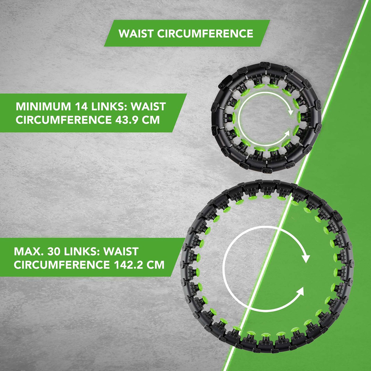 Thanks to the link pieces you can adjust the hula hoop exactly to your preferred size. You simply click the pieces into place, which gives the hula hoop a circumference of 44 to 142 centimeters (14-30 link pieces). By putting it firmly around your waist you can keep exercising without losing your 'flow', as the hoop can never fall off your hips onto the floor. Each link piece also has a nub that massages your abdomen and waist. This helps to improve the blood circulation, so that bodily waste is removed faster.