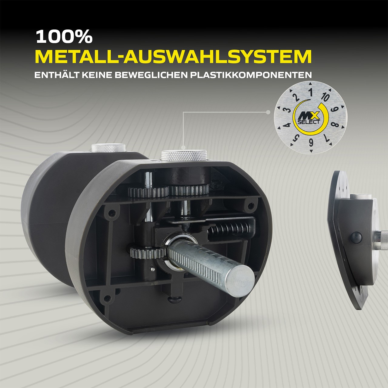 D'une simple rotation de la molette, vous pouvez régler le poids avec précision entre 5,6 kg et 38,6 kg. Le niveau de poids sélectionné est verrouillé dès que le bouton de sélection est enfoncé. Grâce à la poignée ergonomique et antimicrobienne de MX Select, vos mains sont non seulement parfaitement protégées, mais également à l'abri des bactéries, moisissures et autres micro-organismes.