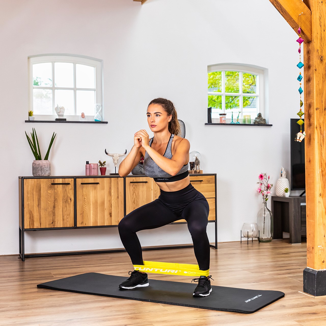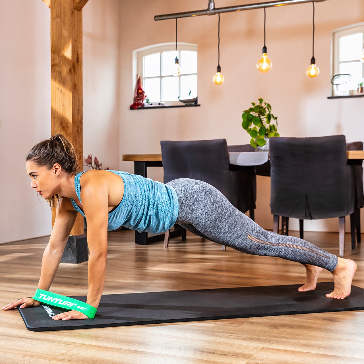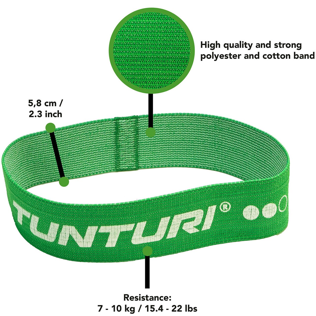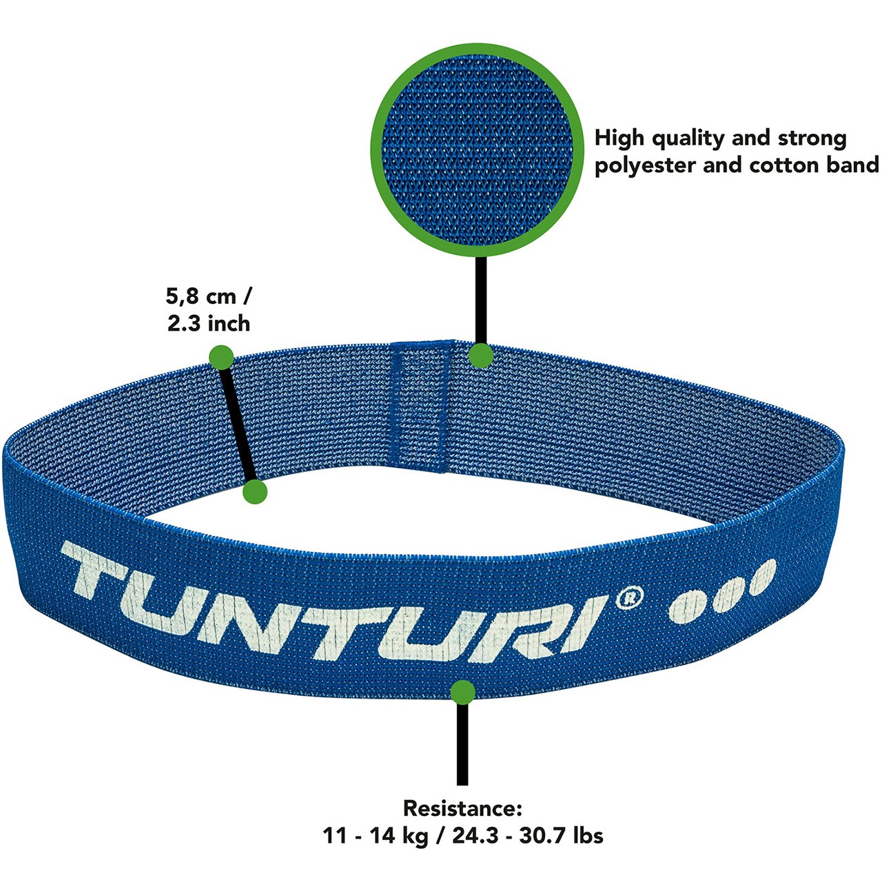 Les bandes d'exercice de Tunturi sont fabriquées en tissu de haute qualité, robuste et écologique. Le textile utilisé est un mélange de coton, de polyester, de tissu élastique et de matériaux souples antidérapants. Les bandes ne coupent donc pas la peau, ne glissent pas et ne s'enroulent pas.