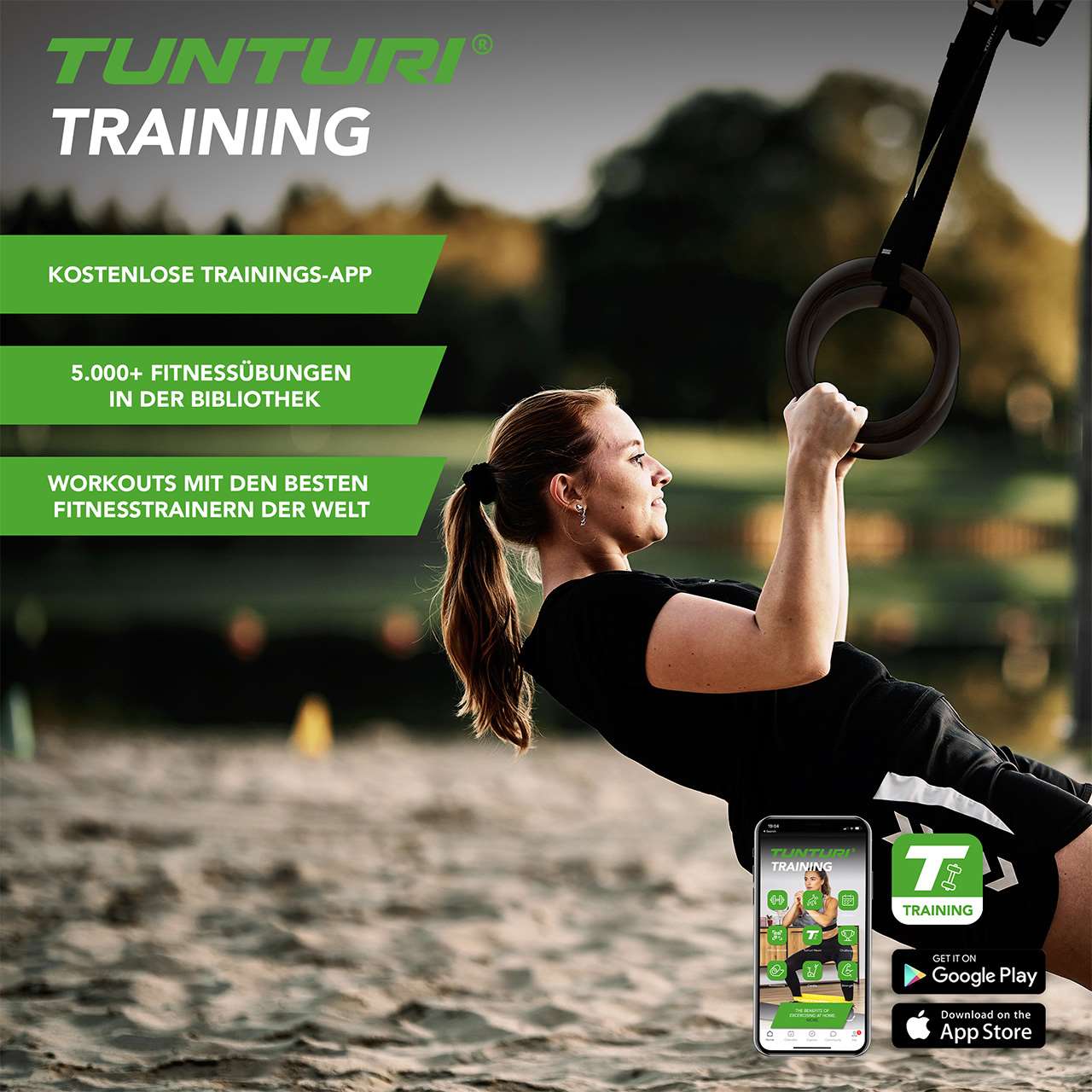 Avec les anneaux de gymnastique en plastique Tunturi, vous bénéficiez d’un entraînement complet et exigeant, qui renforce simultanément force, coordination et stabilité du tronc – idéal pour la maison, le studio ou votre station de musculation.