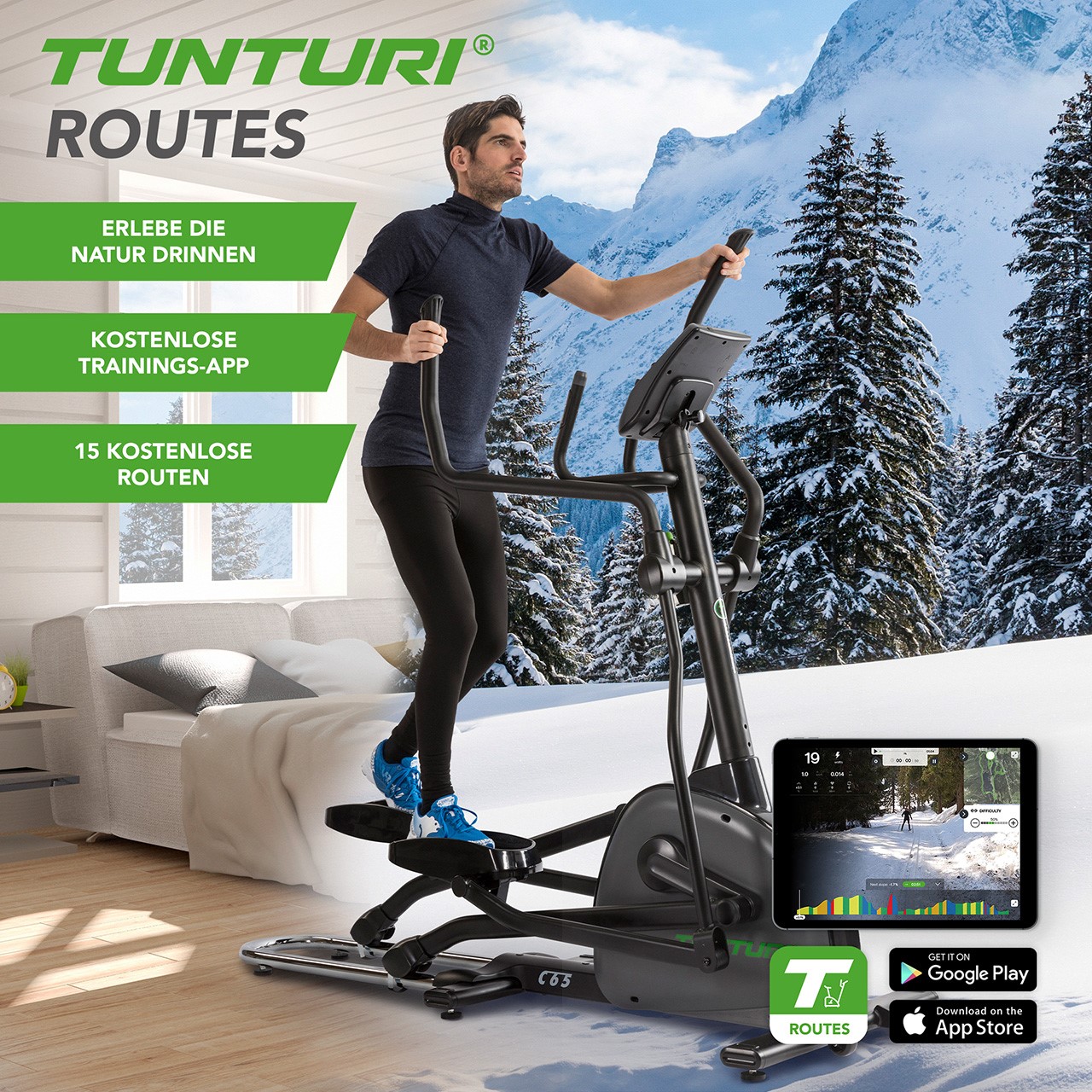 | Apps pour tablettes et smart phones: | Tunturi Routes, i-Console+, Kinomap & Zwift |