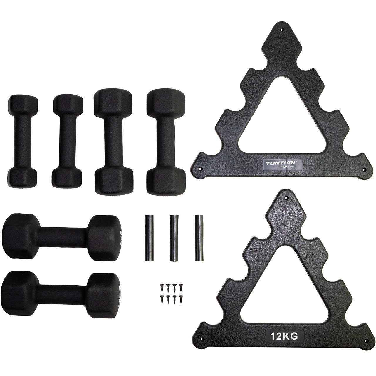 1 x Ensemble d'haltères en néoprène Tunturi avec support