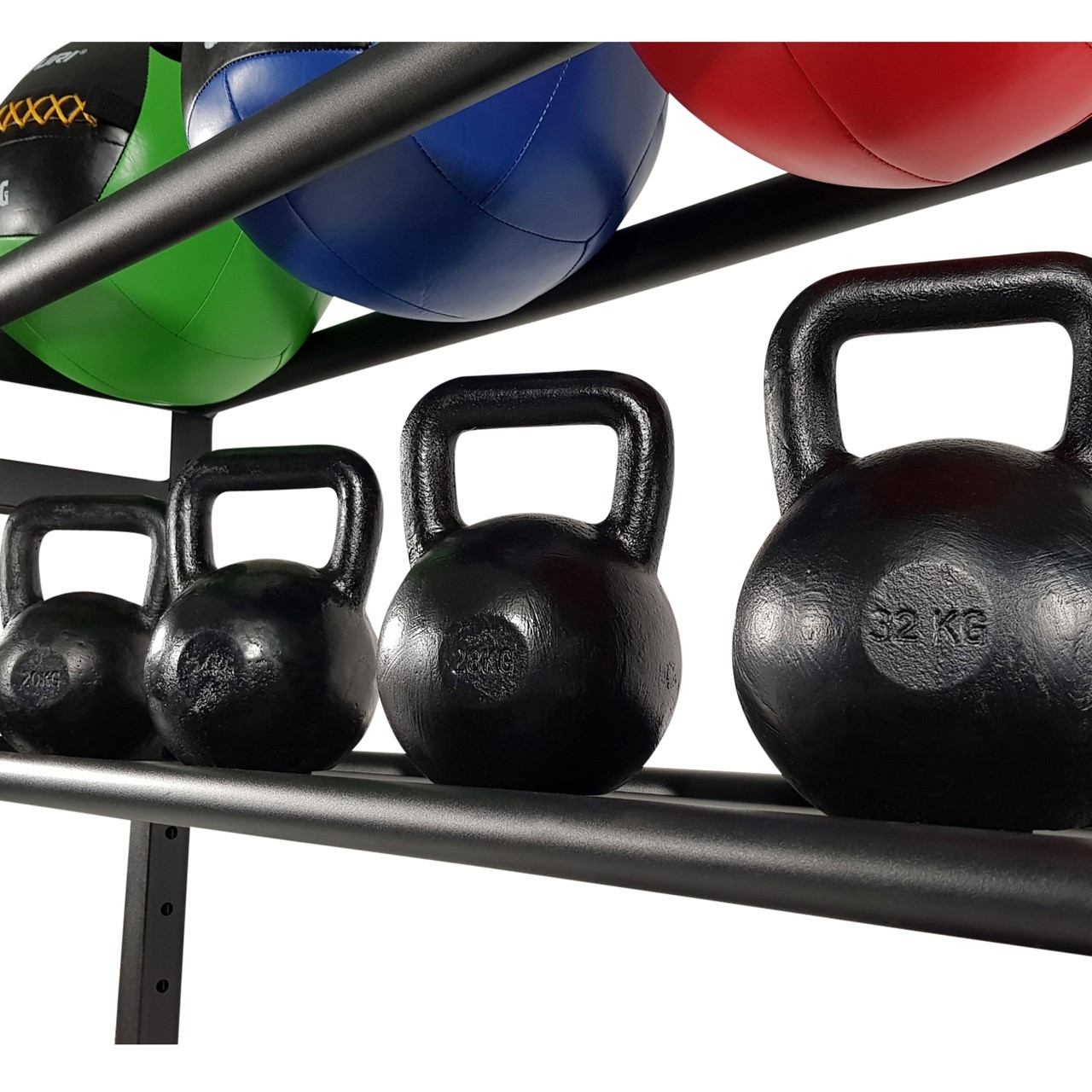 Rack solide pour le rangement sécurisé des kettlebells, wall balls et disques