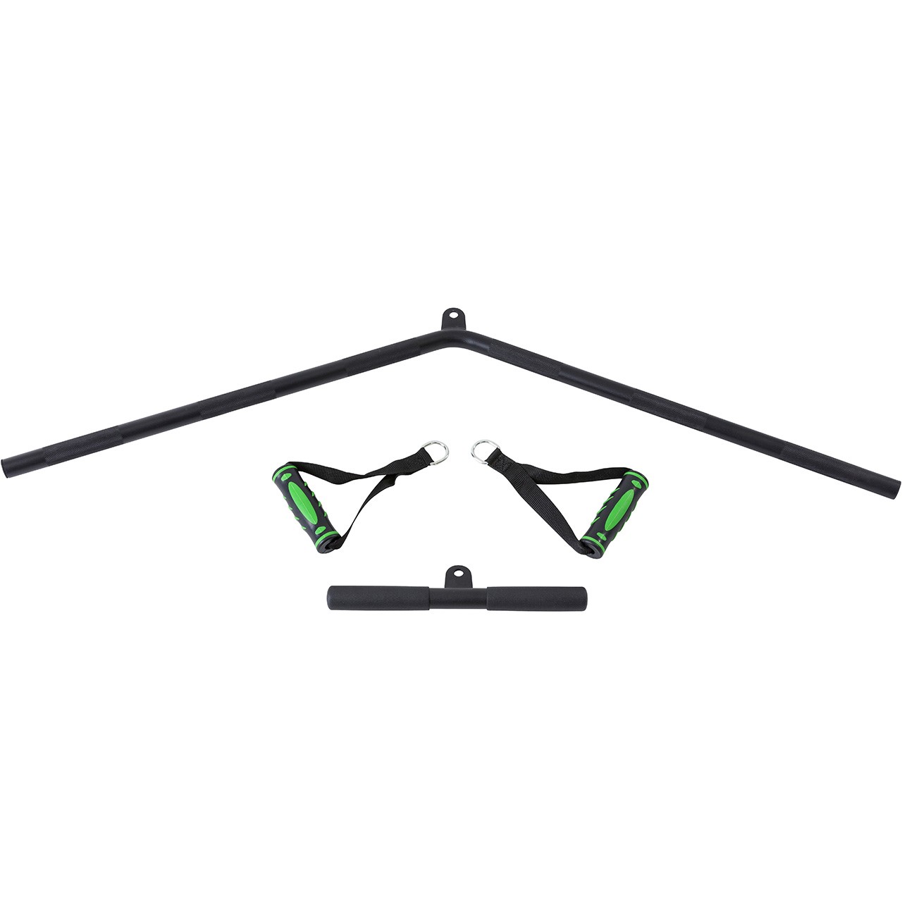 La station est livrée avec des accessoires utiles, tels que des entretoises, une barre à triceps, une barre de tirage et une paire de poignées individuelles, ce qui permet de diversifier vos séances d'entraînement. Vous avez ainsi la possibilité d'entraîner non seulement le haut du corps, mais aussi les muscles des jambes et des fessiers.