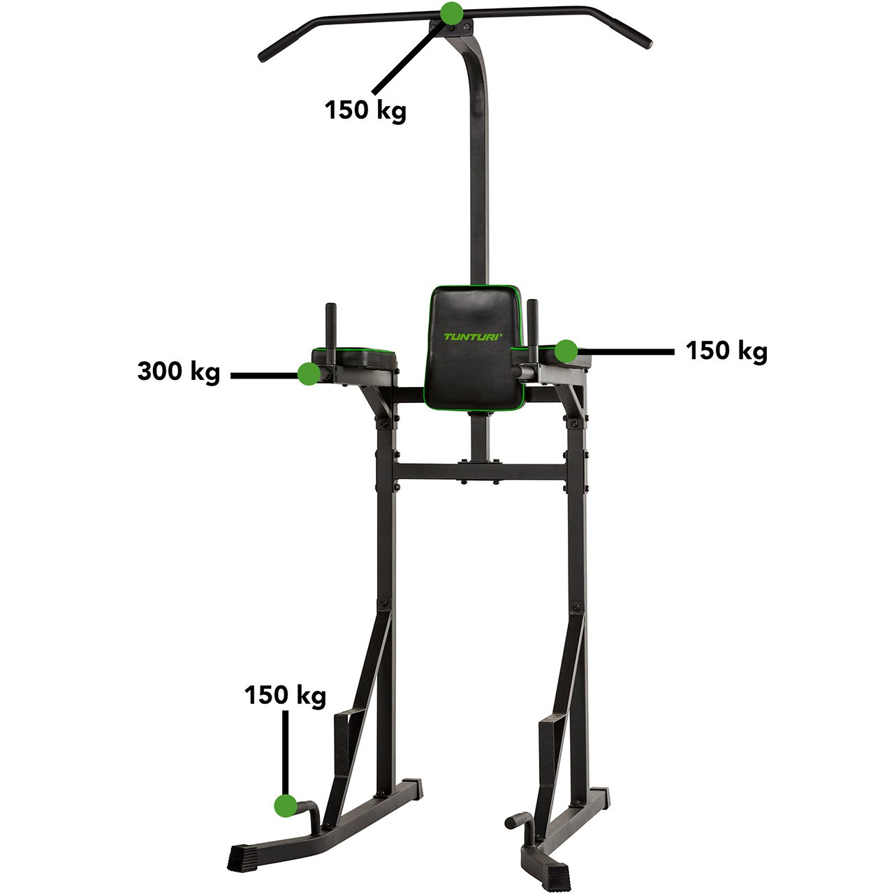 La station de traction Tunturi PT20 Power Tower, compacte et abordable, prend peu de place et offre de nombreuses possibilités d'entraînement pour un exercice efficace avec le poids de votre corps, directement chez vous. Avec la PT20, vous pouvez entraîner votre dos, votre poitrine, vos abdominaux ou vos bras, sculptant ainsi votre corps en une véritable œuvre d'art athlétique. La barre de traction large offre des options optimales pour les dips et les tractions, idéale pour atteindre des objectifs de fitness ambitieux.