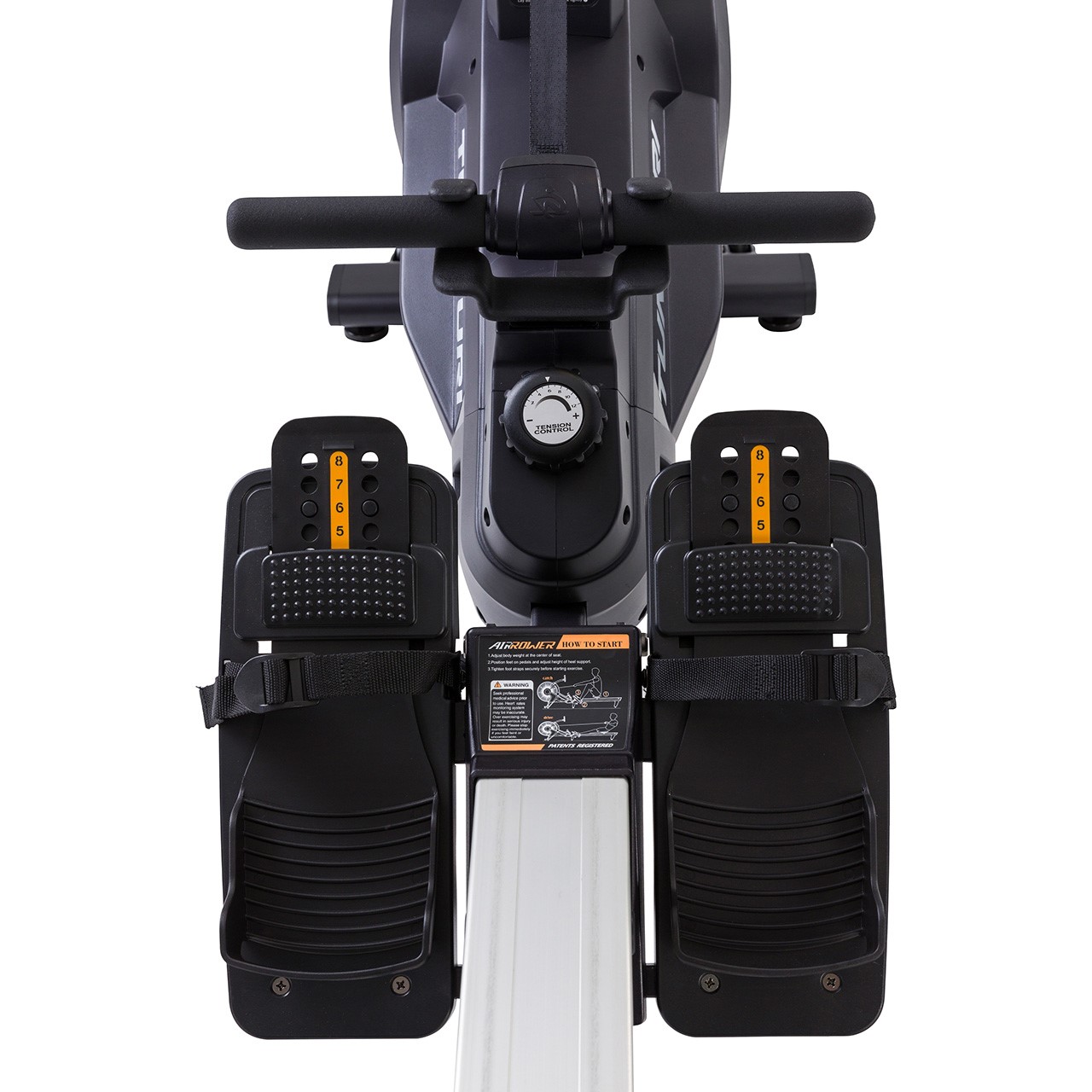 La résistance se règle facilement en tournant un bouton près de la pédale. De plus, le Platinum PRO Air Rower propose une sélection de programmes d'entraînement réglables via le moniteur, rendant votre entraînement varié et efficace.