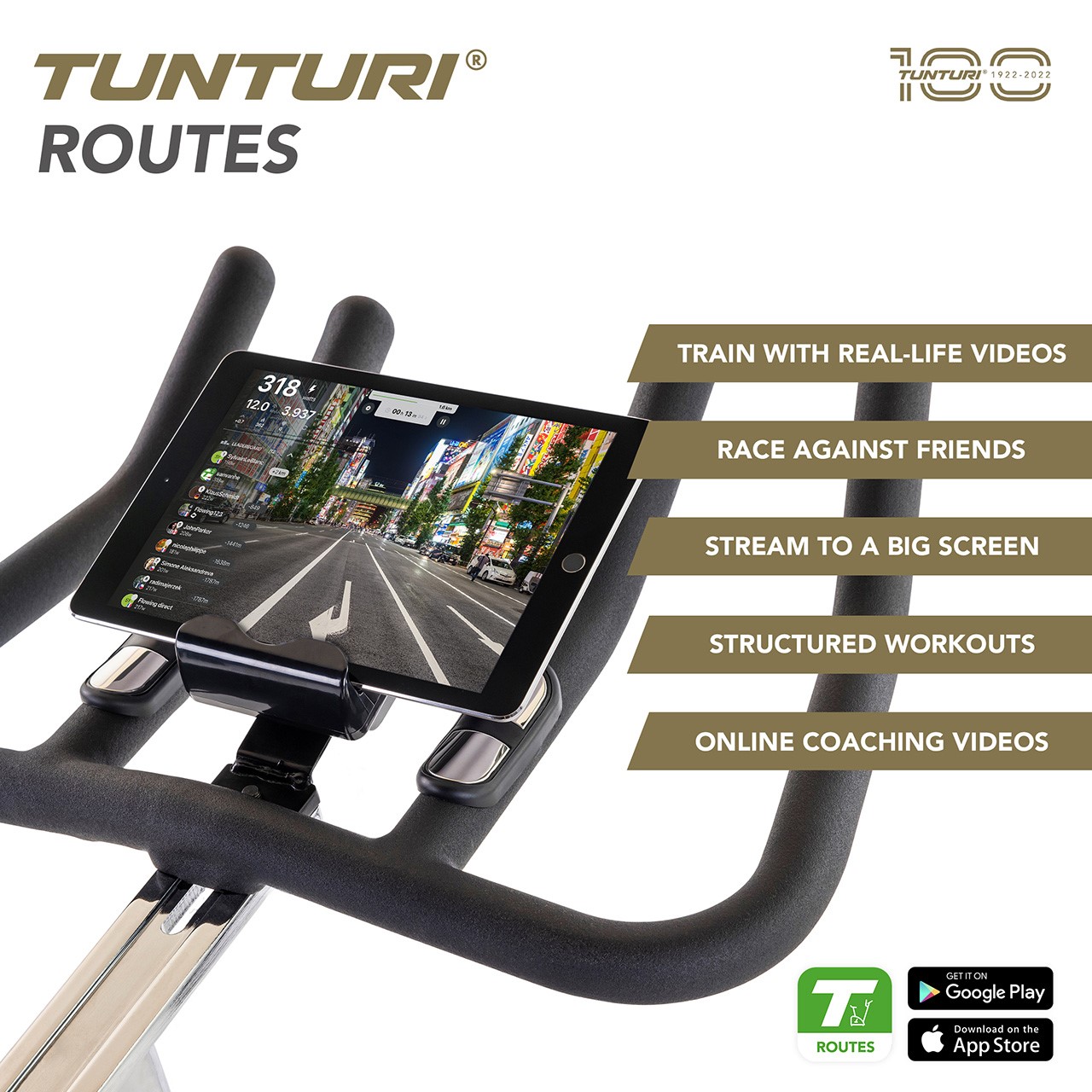 Compatibilité avec les applications : Tunturi Routes, i-Console+, Kinomap & Zwift