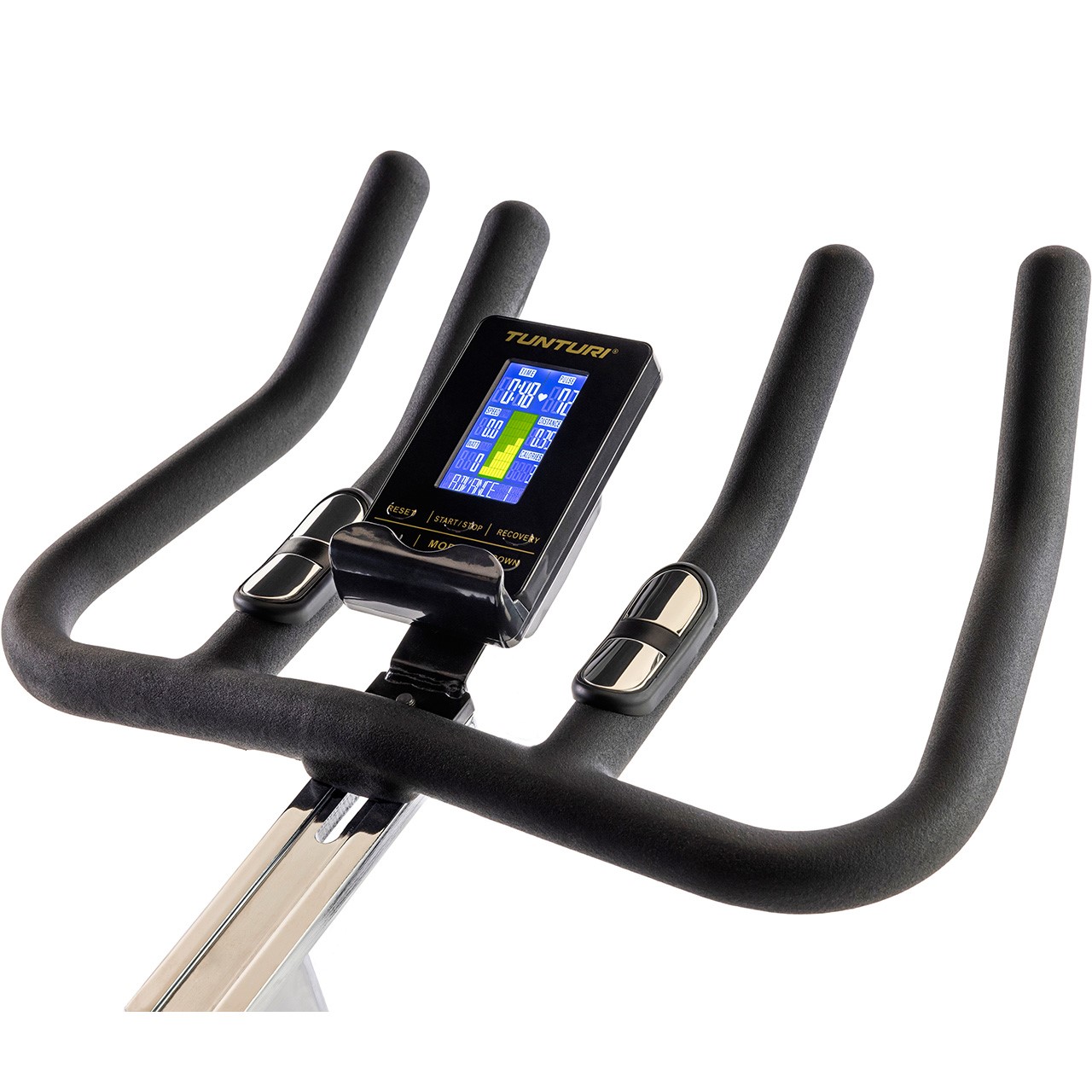 mesure de la fréquence cardiaque sur les poignées, en option avec ceinture pectorale 5,4 kHz (non incluse)