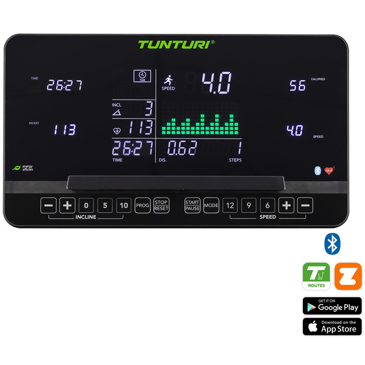 Sur le grand écran LED du T80, vous pouvez gérer 47 programmes différents et afficher les données de performance graphiquement. Connectez votre tablette, smartphone ou téléviseur via Bluetooth pour utiliser les applications Tunturi Routes avec plus de 50 000 emplacements, Anyrun et Kinomap. Selon la version, les applications peuvent être gratuites ou payantes.