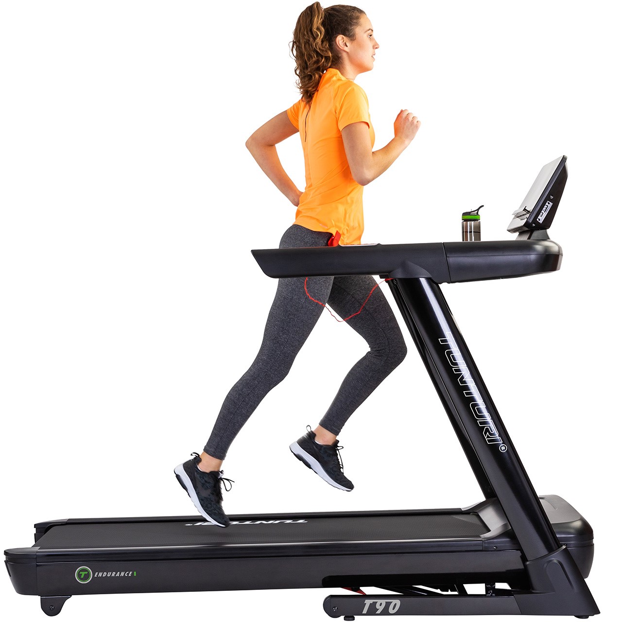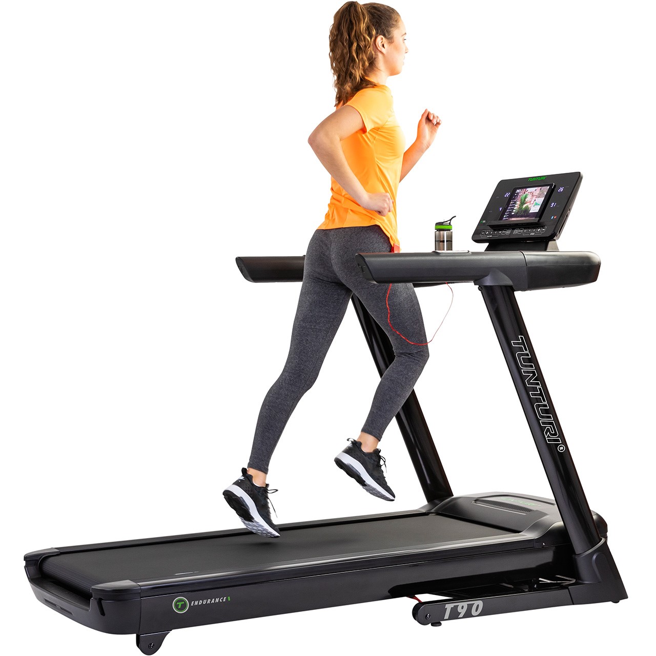Le tapis de course Tunturi Endurance T90 offre une vitesse maximale de 24.0 km/h et des inclinaisons allant jusqu'à 15 niveaux. Le moteur silencieux et puissant atteint une puissance de 5.5 CV.