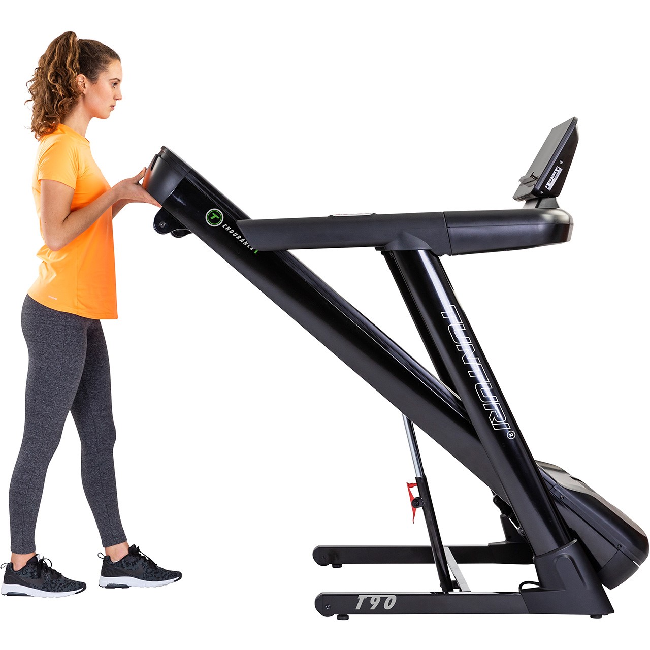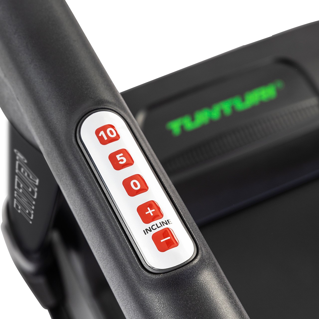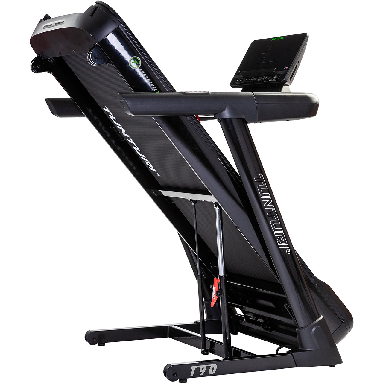 Le tapis de course (22TRN90000) dispose d'une surface de course de 153 x 55 cm et d'un système d'amorti Tunturi T-FLEX Comfort Top offrant un confort de course exceptionnel. Cela protège vos articulations et permet des séances d'entraînement plus longues.