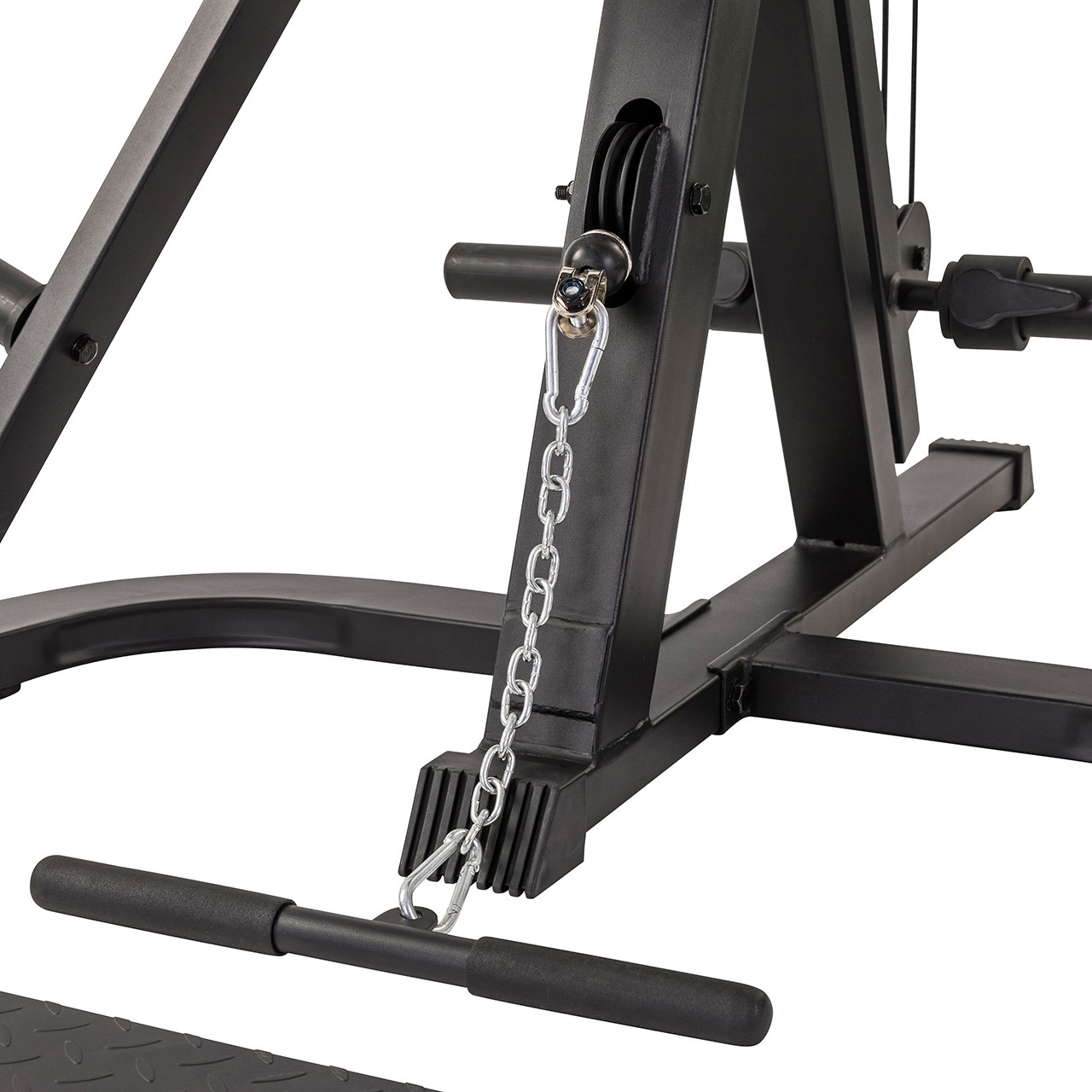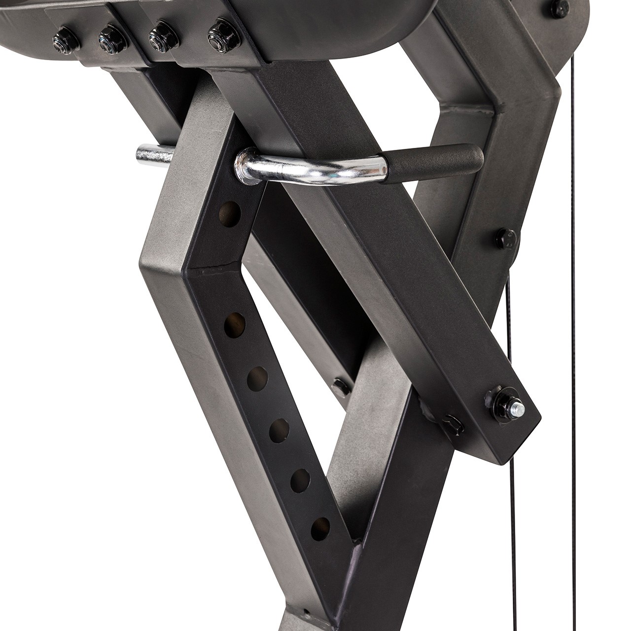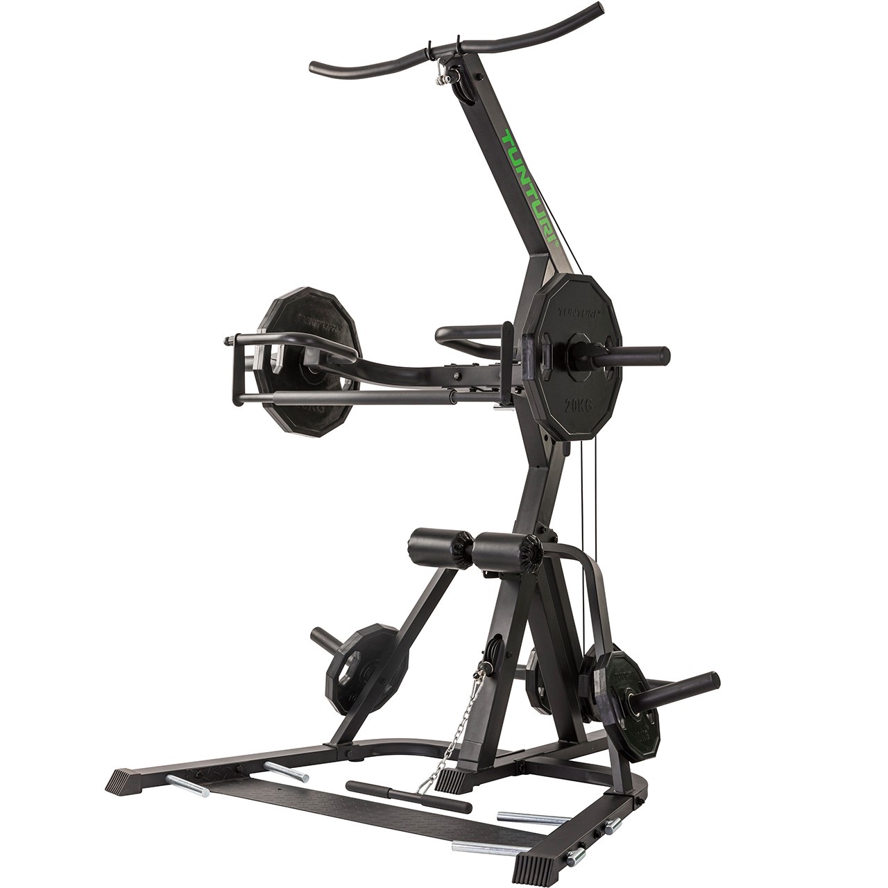 La station WT85 est équipée d'un bras de levier ainsi que d'un câble haut et d'un câble bas. Vous pouvez charger l'appareil avec des plaques de 30 mm ou des disques de poids olympiques de 50 mm de diamètre. La poignée rotative sur le bras de levier offre une diversité supplémentaire dans votre entraînement. Le câble est fourni avec une poignée droite et peut être facilement combiné avec d'autres produits Tunturi Home Gym, comme un banc de musculation. Les crochets inférieurs sont idéaux pour l'entraînement avec des bandes de résistance ou des power bands, qui sont également disponibles à l'achat séparément.