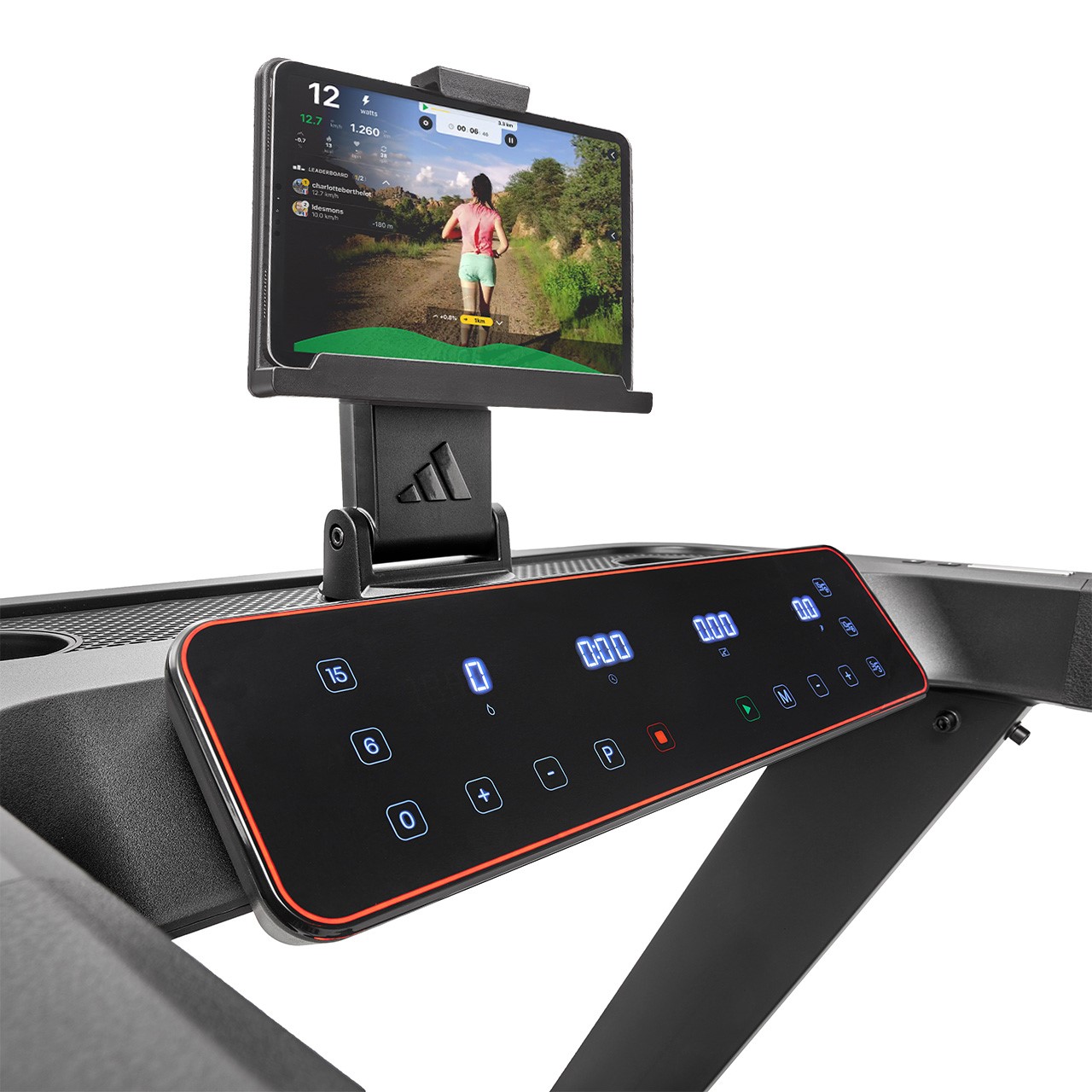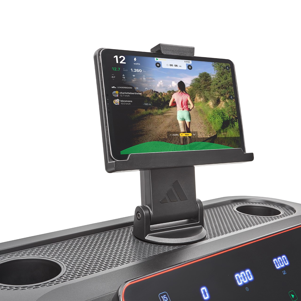 Le tapis de course dispose d’une console moderne, de haut-parleurs Bluetooth intégrés de 5 W et de l’éclairage LED rouge caractéristique de la série Ultra. Il affiche vos données de performance en temps réel via une interface claire et intuitive. La combinaison de la Console+ adidas et du T-23 vous ouvre les portes d’une communauté mondiale de coureurs. Compatible avec Zwift, il vous permet de vivre une expérience en ligne interactive et de parcourir des itinéraires virtuels. Console+ est également compatible avec Kinomap pour vous permettre de libérer l’aventurier qui sommeille en vous en courant sur des parcours réels, en relevant des défis et en vous mesurant à vos amis.